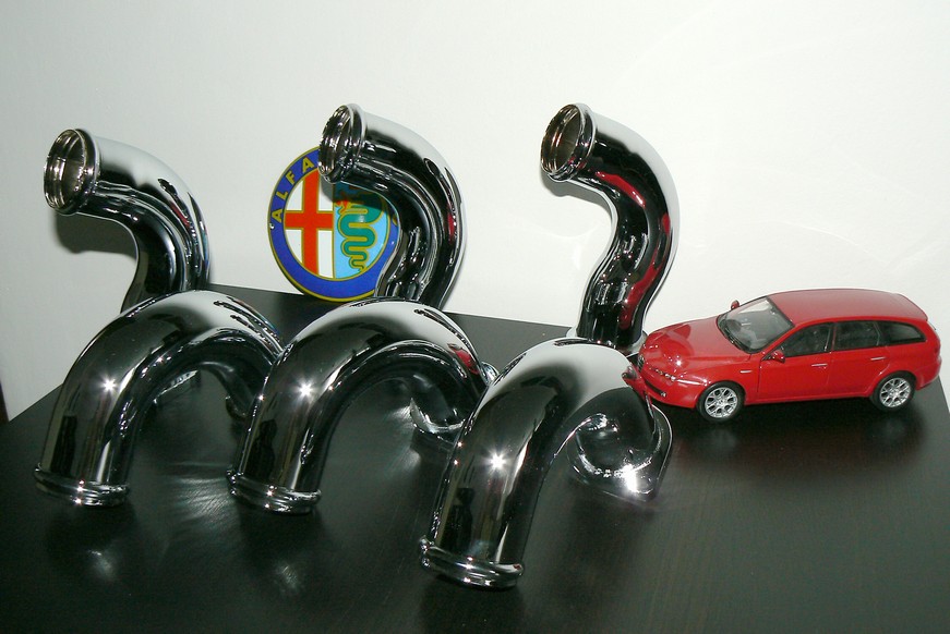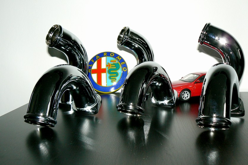 Právě jsem dokončil kolena sání na V6 pro jednoho Alfistu a tak mi tp nedalo, trochu jsem si hrál s foťákem. Jinak ty chromy jsou lepší jak ty fotky. A vyšlo to líp jak originál,mají to celkem ošizený. Ostatním jsem k dispozici.