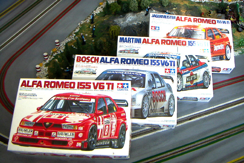 Pro zájemce model od firmy Tamiya 1/24 a vyráběla 4 verze Alfy Romeo 155 V6 Ti, tovární stáj, Bosh a Jagermaister a Martini. Dá se sehnat už jen v bazarech. . .