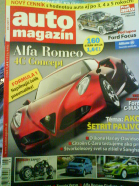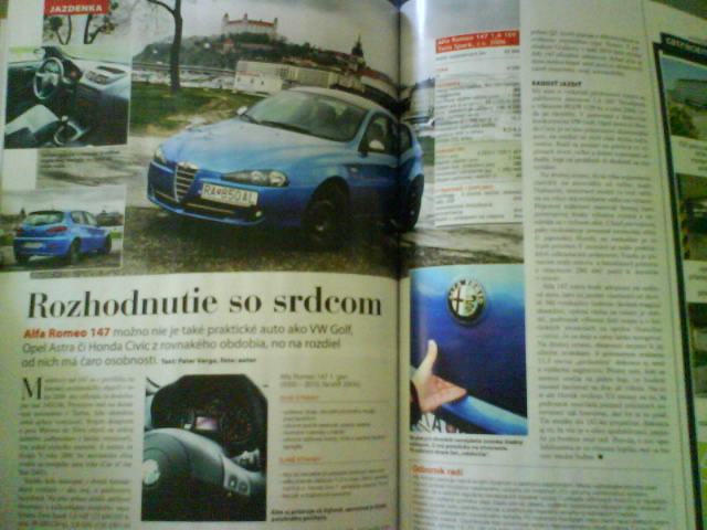 napodiv som tam vsak nasla velmi pozitvnu recenziu na giuliettu a tak isto v sekcii "jazdenka" celkom pozitivny clanok na 147 FL 1,6 TS 88kW + ako titulok znaci clanok o 4C a zase KLADNE rakcie az na jednos skonstatovanie ze interier nebude taky ako bol predstaveny v koncepte, ale "normalnejsi" ktory sa bude priblizovat doterajsim modelom...