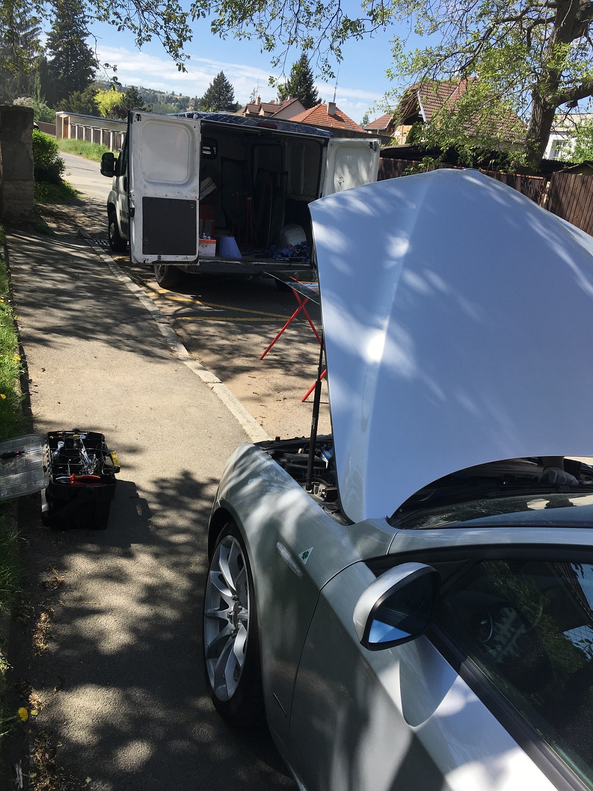 - Výměna odhlučnění a těsnění kapoty, deklu motoru a konečně TI kryty zrcátek