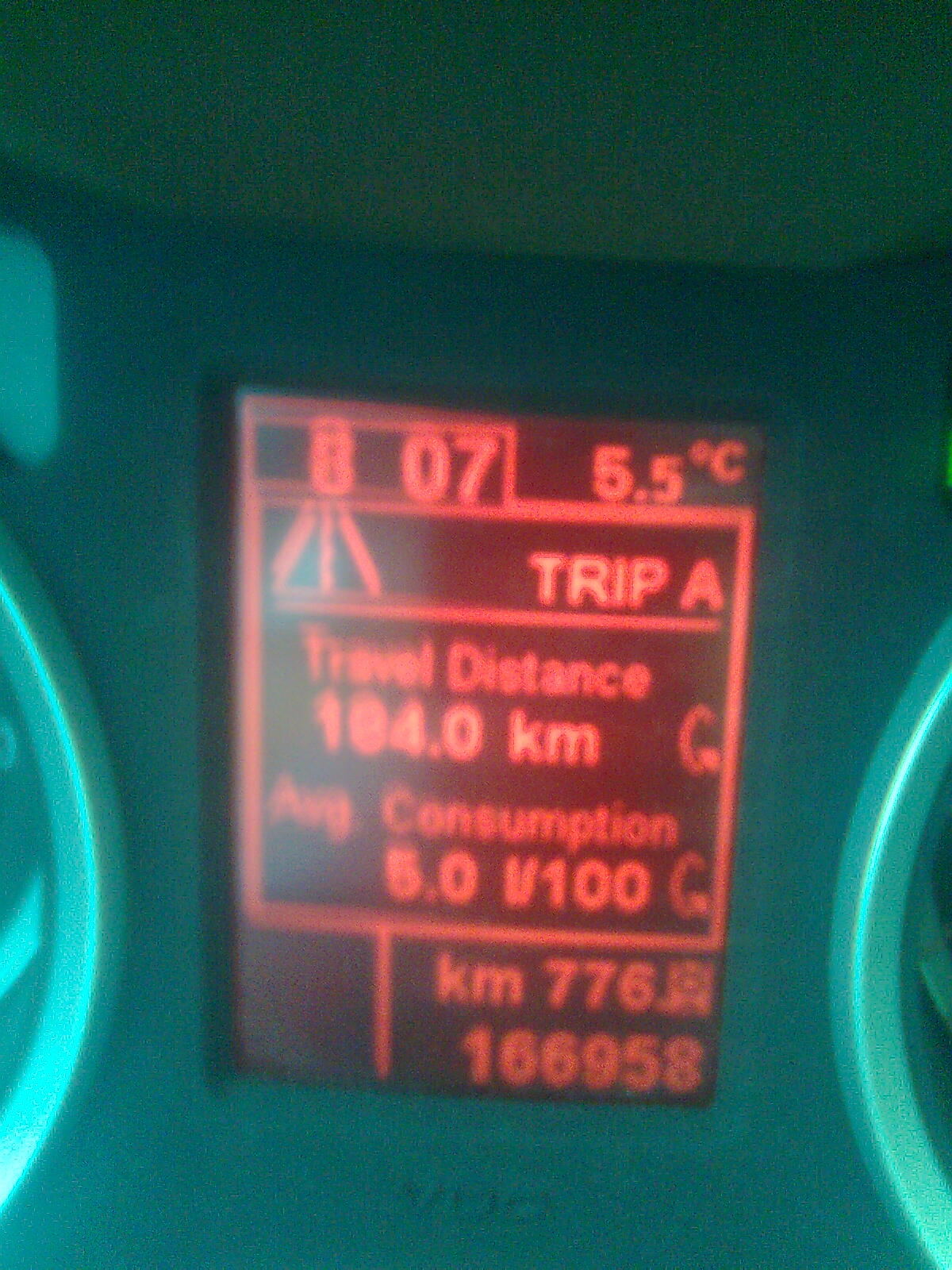 Včerejší cesta Prachatice Vrchlabí a zpět. Bohužel jsem při dojezdu zpět do Prachatic a znovu vyfocení budíku nepřepl na stav najetých km, tak to nemůžu doložit, nicméně po 570km průměrná spotřeba 5,3l, těch 5,0 je po 184km, omlouvám se za kvalitu, fotil jsem to jenom telefonem a nějak se mi to za jízdy nepodařilo.