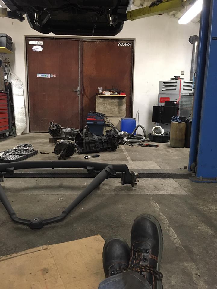 Nyní je již sundaná zadní náprava a odstraněné staré spojkové a brzdové vedení. Nápravu a nosník šplíchnu nějakou barvou, ložiska a unibaly jsou v pořádku, takže tam není co řešit. Nyní bude ta veselejší část kdy se tam budou dávat zadní brzdy ze zagata a kratší převodovka z TSka na kterou se budou montovat náboje na silné poloosy a V6tková spojka.