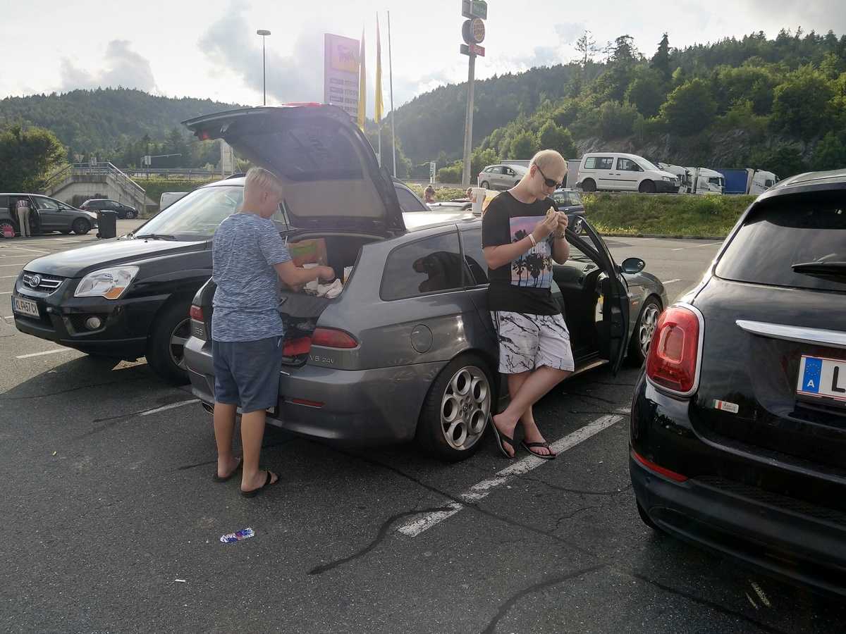 , spotřebu jsem nepočítal, ale odhadem zase kolem 9 litrů, takže v pohodě, benzín byl o malinko levnější než loni, ale o něco málo v Itálii zdražili dálnice, Rakousko taky bez kolon (proto se taky cestou dom stavujem vždy někde na čumendu, abychom se vyhnuli tomu náporu, jak se všichni valej zpátky