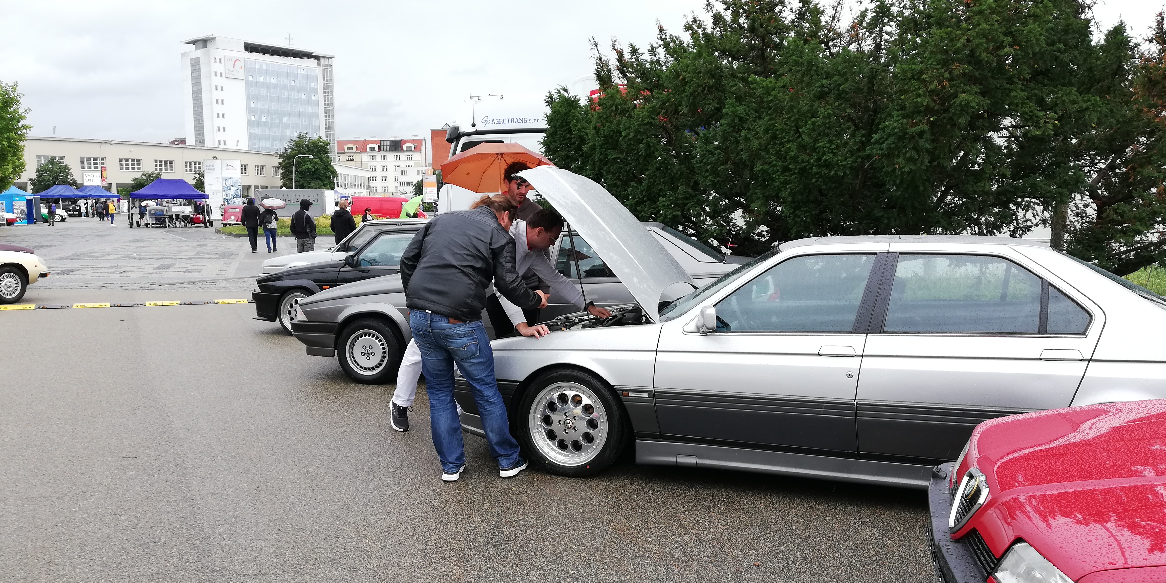 jinak teda naše expozice hýřila barvami, červená, žlutá, modrá... krása.... a pak samozřejmě obligátní černá a šedá na starých sedanech a bílá na modernějších autech :-) Hodně to vyniklo v kontrastu k vedlejší expozici Porsche, kde z 20 aut bylo jedno žluté a jedno červené a zbytek byl černý nebo šedý nebo bílý....