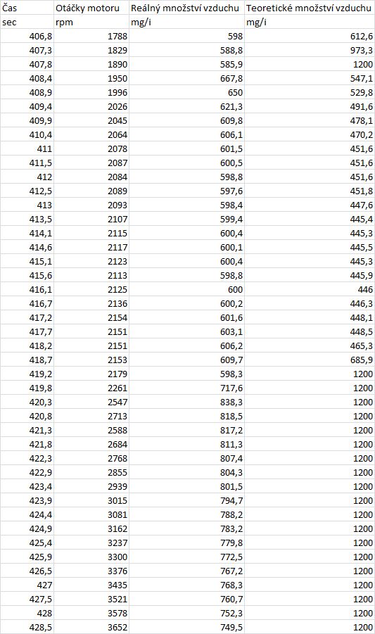 No nevím, já jen, že pokud se nemýlím, jak píšeš, požadovaný maximální průtok (množství vzduchu) je jak říkáš 1200 mg/str u JTDm. Já mám třeba z grafu při plném plynu a otáčkách vyčteno max. 850 mg/str. Požadovaný je ve stejnou chvíli asi 845 mg/str. Takže vše sedí. U kamaráda bylo naměřeno 780mg/str. Ani jednomu z nás nepadá auto do nouzového režimu, není načtena žádná chyba, tlak turba, na liště, vzduch, všechno sedí a auta jezdí normálně. Proto mě to zajímá. Odkud víš ty o 1200 mg/str, měřil jsi to? GTA jsem taky měřil, proto to sem píšu. Nemluvím a nechci údaje typu jedna paní povídala...