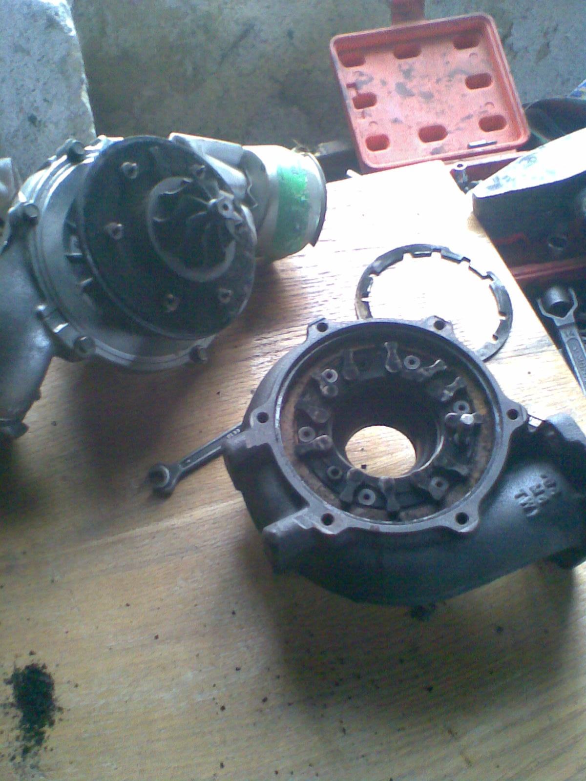 tak jsem dnes rozebral turbo z A6 abych ho otočil jak potřebuju a až na co že musím předělat trubku pro přívod oleje a odvod oleje, padne na svody a vejfuk jak dělaný