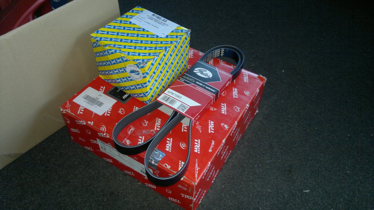 Zadní zkroucené kotouče, nové pravé přední ložisko co hučelo jak metro, a řemen co běhá kolem něčeho v motoru
