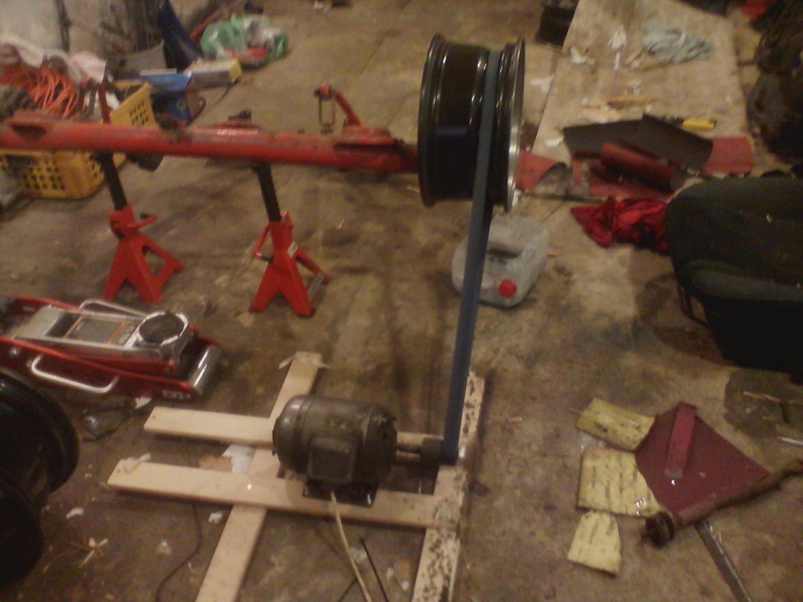 a ta fotka uprostřed - to je nástroj na úpravu límců - zadní náprava ze 75tky, elektromotor, a řemen zrobeny z kurtny , kterou jsem svařil pájkou :-)