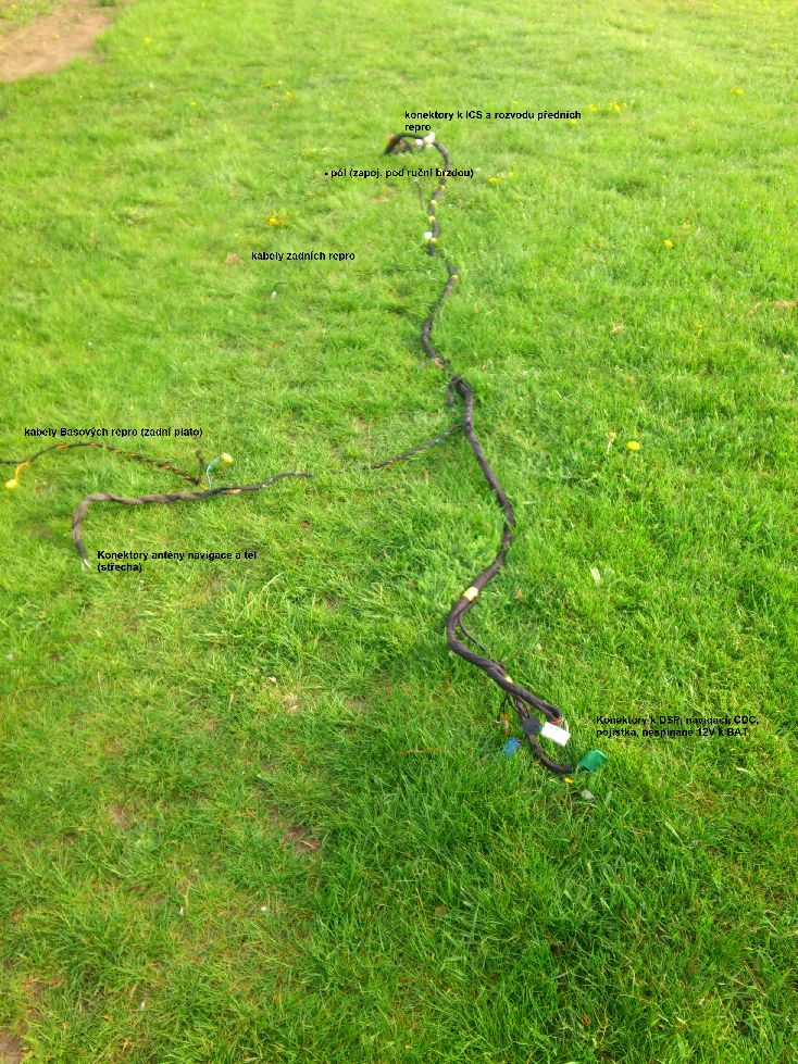 - vytažení původního svazku z pod palubovky a koberce