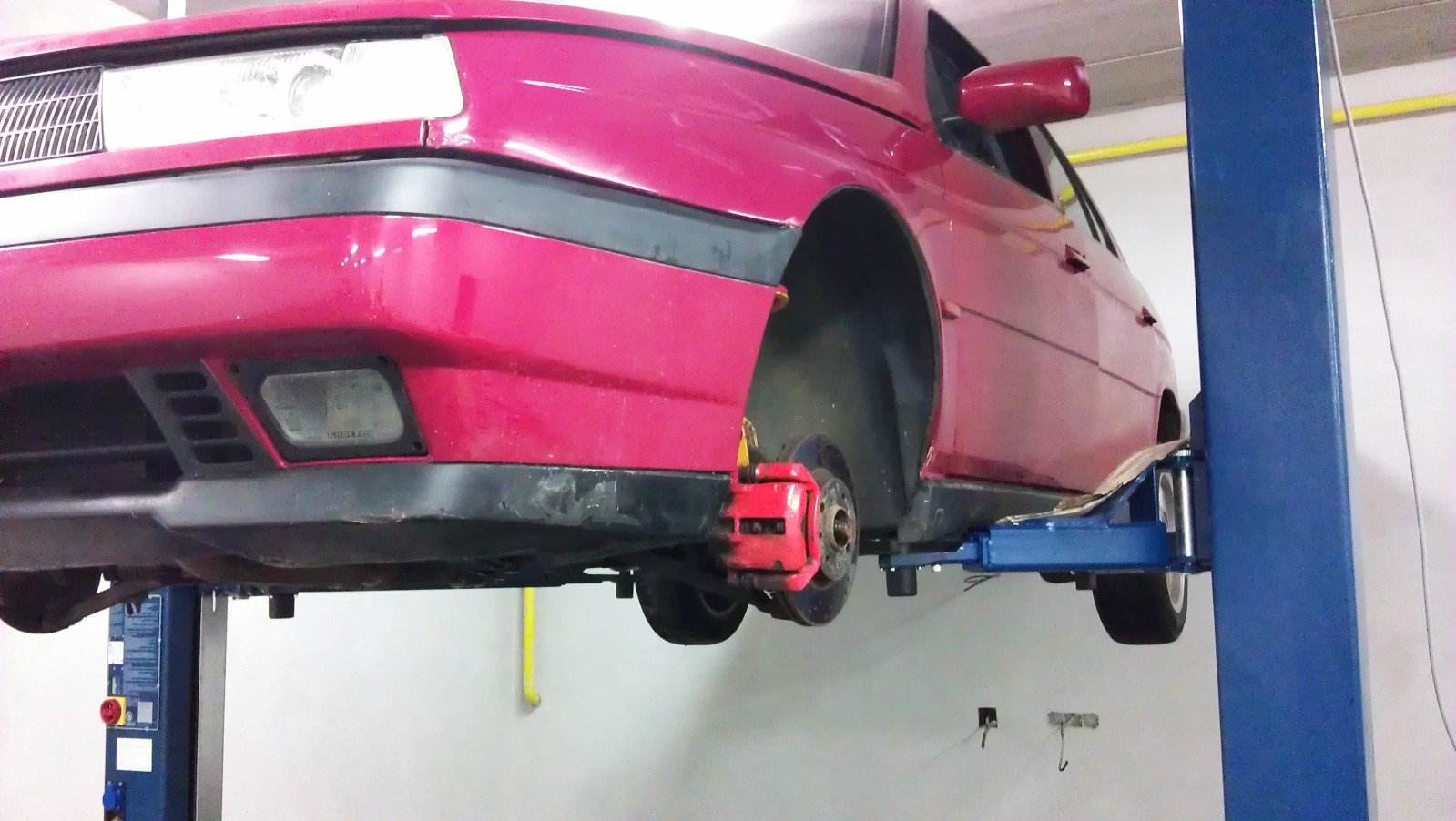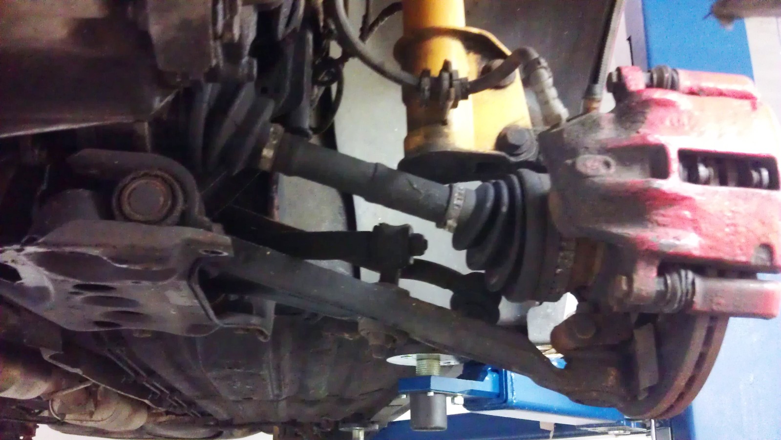 Opravdu v rychlosti vyfocených pár fotek ze stádia sundávání nápravy. Plánovali jsme to udělat bez shození, ale jeden šroub nejde na řízení povolit, tak musí jít dolů..