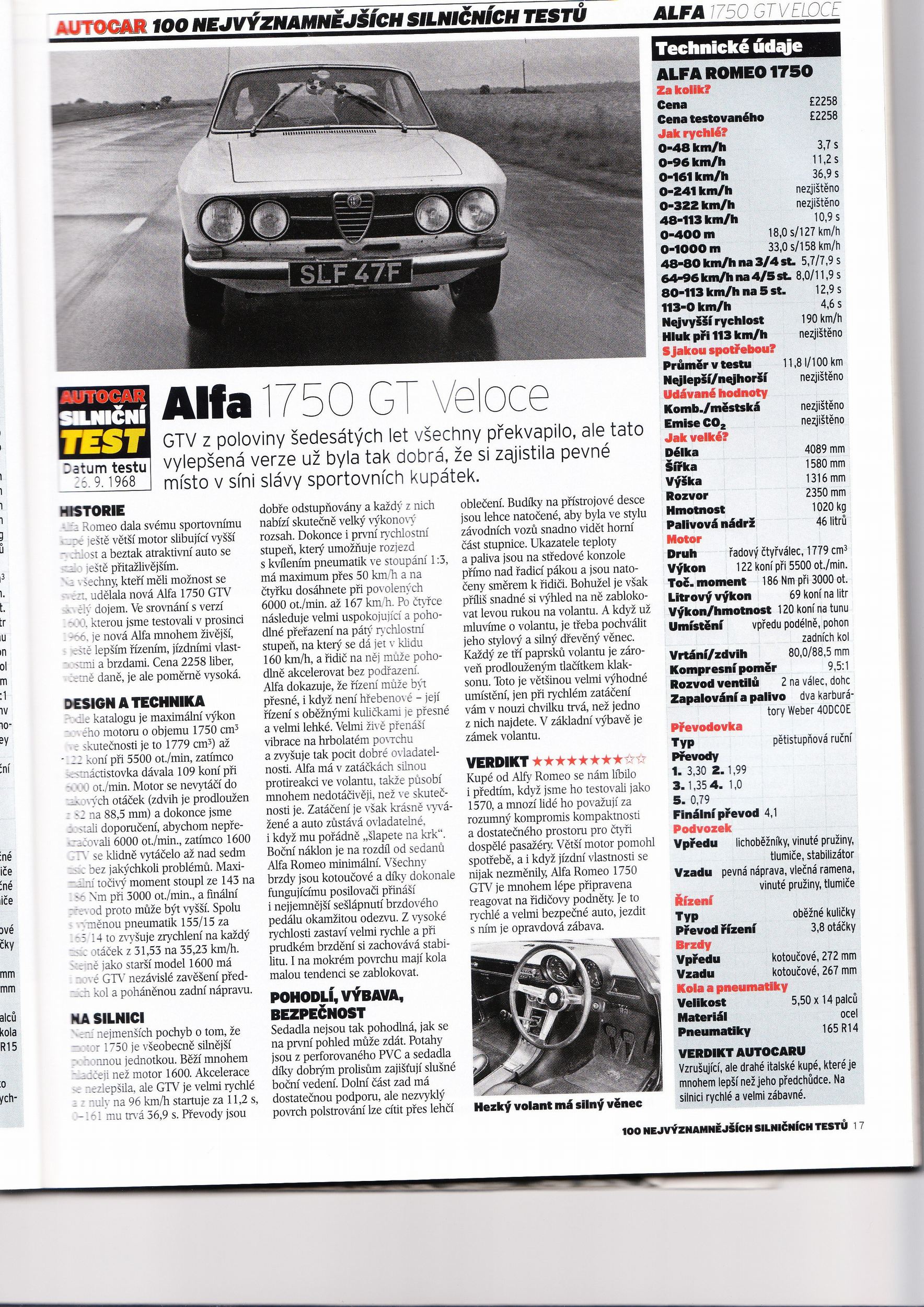 pokud si nekupujete casopis auto motor a sport classic , tak je tam tedka srovnavaci test a je tam vedle BMW a Triumphu myslim, krasna Giulia GT a pak je tam nadherny clanek o jedne staricke znovuzrozene Alfe Romeo...cely casopis je opet naprosto paradni...