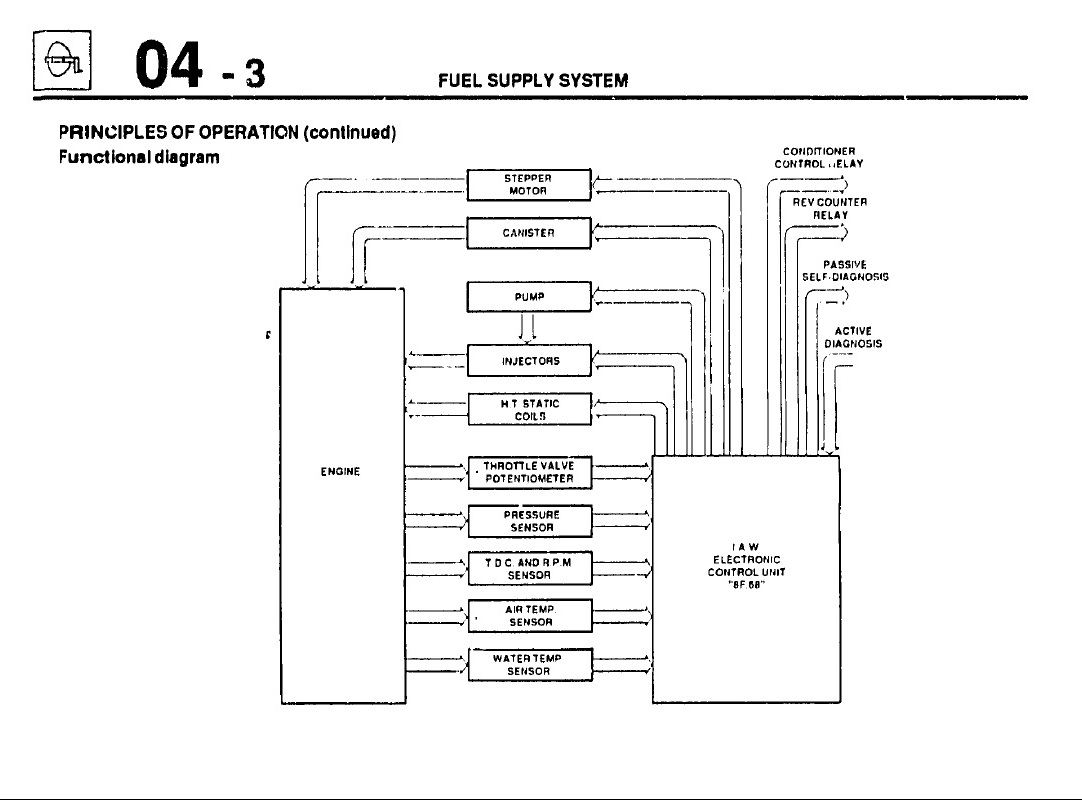 Protože principu spalovacího motoru zas tak nerozumím, asi po měsíci mě napadlo (teda vlastně samotnýho mě to nenapadlo) podívat se do manuálu. Tam je hezky popsáno, jak funguje vstřikování Marelli IAW, včetně grafického znázornění: