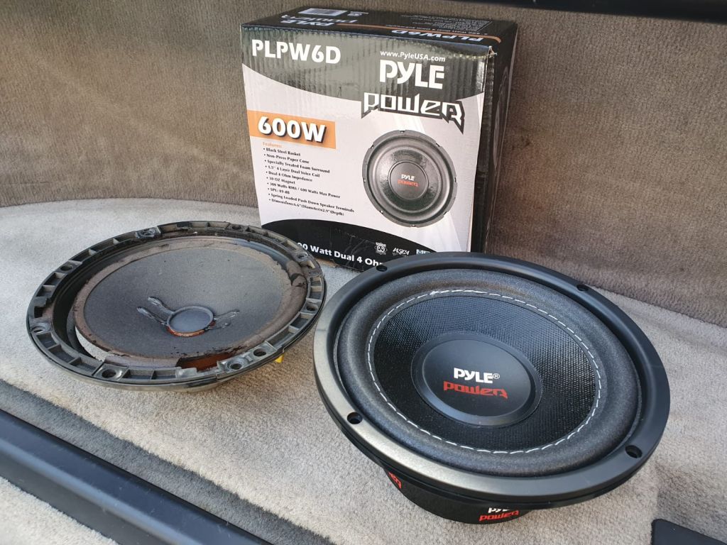 Do stredu jsem sehnal dvoucivkovy Pyle, kterej sedi presne na misto toho puvodniho. Problem ale je, ze nejak nezvlada tu velkou bednu a v podstate free-air konfigurace mu moc nesedi, takze se bude vyrabet 15l uzavrena bedna. Tu chci udelat plytkou a potahnout ji do strany k baterce aby nezabirala misto v kufru. Pak mozna jeste zesilovac, pokud bude treba ale ne z duvodu, ze by tomu chybel vykon ale spis kvuli nastaveni frekvencniho pasma (2 pasivni vyhybky vyjdou financne nastejno jak 2ch zesilovac z bazaru). Do dveri jsem na zkousku osadil stredobas z mini regalovky Tangent Evo E4 a zvuk to bude mit dobrej, akorat taky potrebuje uzavrenou ozvucnici 2l - takze mam v planu to vylaminovat. Samozrejme vytlumit dvere bitumenem a penou at mi nedrncaj zrcatka