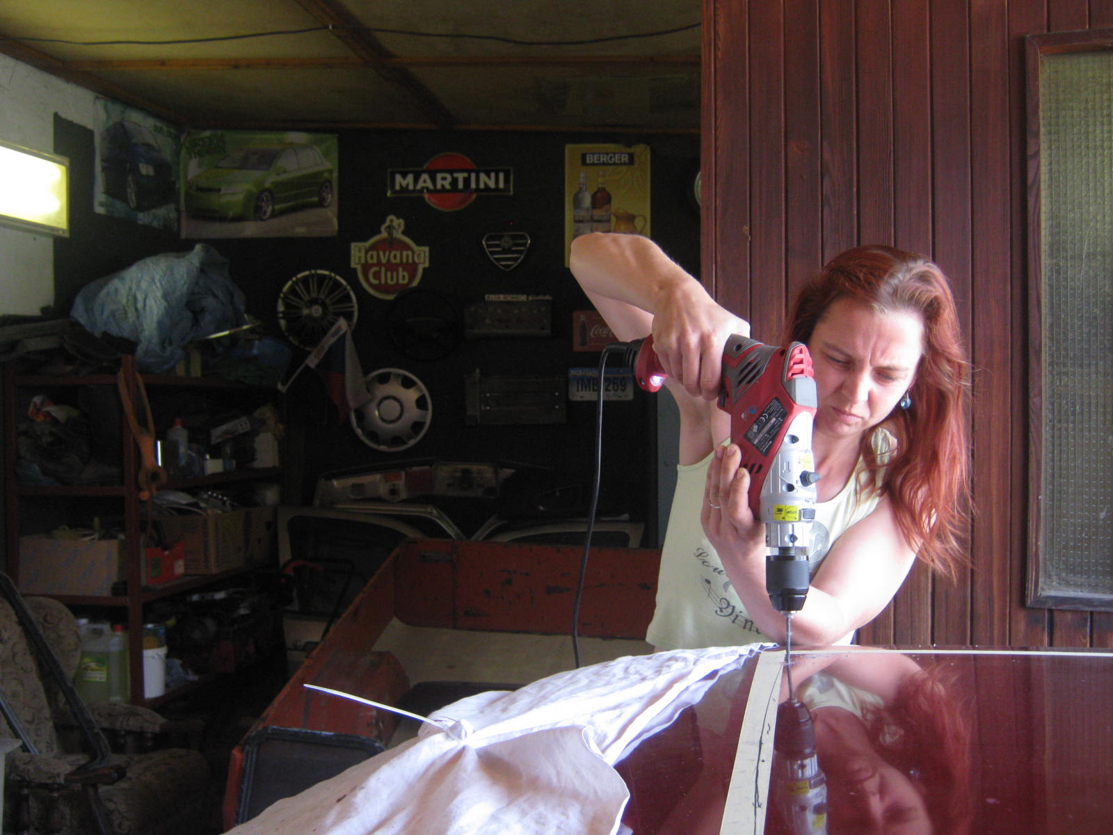 Veverka píše:Ahojte, dlouho sem nic nenapsala, tak to musím dohnat. Neznamená to, že bych pro alfičku nic neudělala, právě naopak. Už mám střešní okno, první díru sem si vrtala sama (viz.foto) a trochu sme vylepšili tu nechutně oloupanou kapotu (viz. foto). A když se umeje, tak to vypadá docela k světu :D