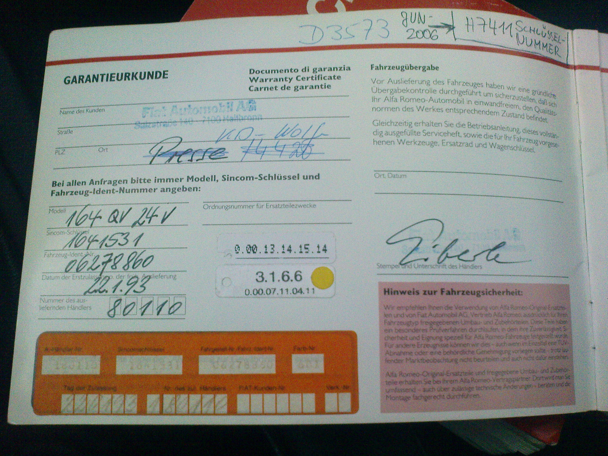 Jsme se dneska strachal v garazi v manualech od Alfiny, nejak jsem predtim prehlidl servisku... Prvni majitel byl Fiat, jako auto pro tisk, takze asi dostala pekne zabrat