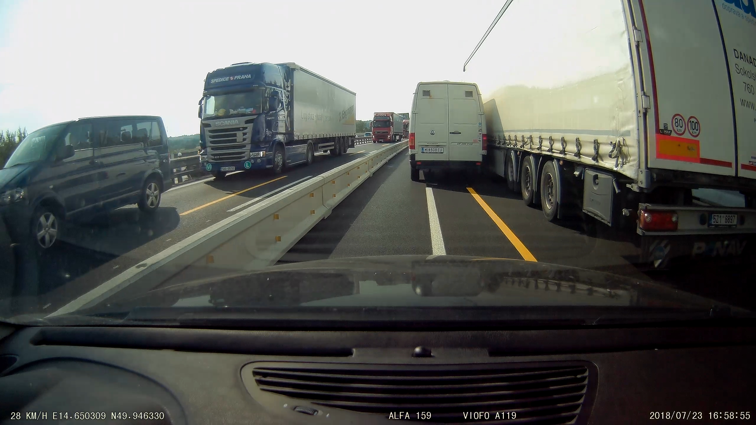 A v jiným zúžení obdobná situace, jen tam v tom mým levým pruhu ležel pořádnej kus nárazníku.