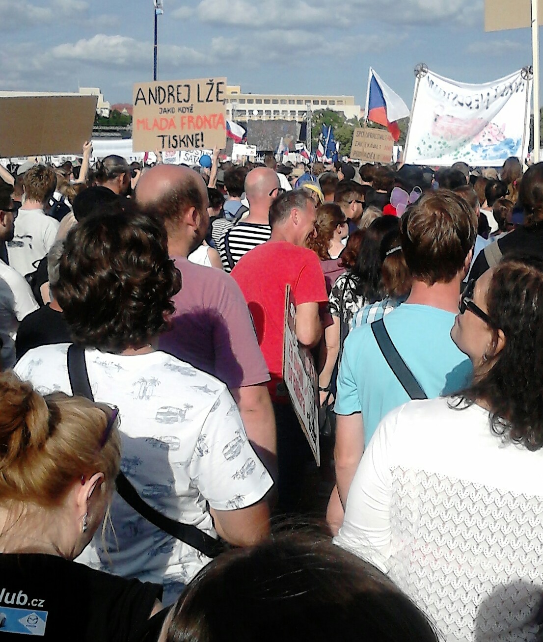 Muž v červeném triku s transparentem v podpazi? Pozná někdo na prvni dobrou?