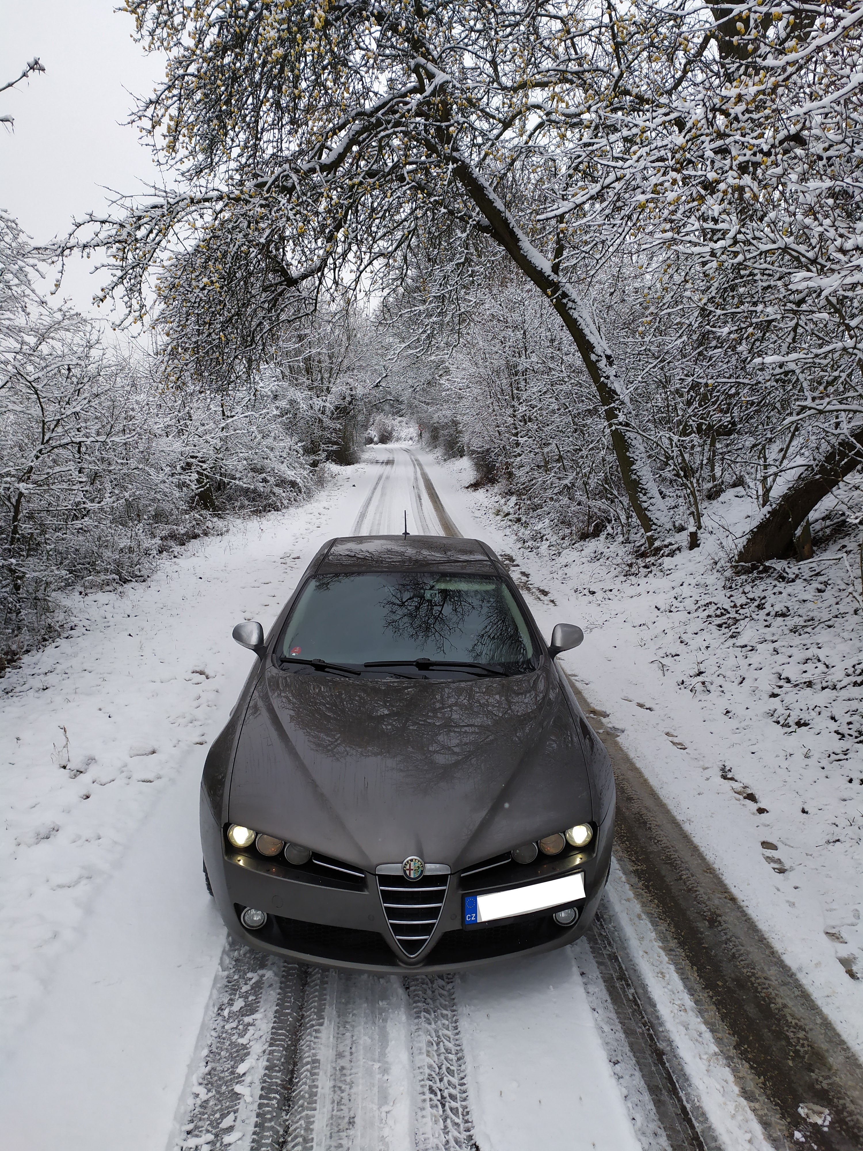 Dlouho se nic nerozbilo, tak aspoň mezi svátky začala rosit tlaková hadice posilovače řízení z čerpadla do převodky. Ve firmě specializované na hydrauliku jsem ji nechal zrepasovat, rovnou jsem vyměnil i motorový olej (Millers Oils), dal nový výpustný šroub do vany a samozřejmě olejový filtr. Alfa u mě před koncem roku slavila už 3 roky ve službě. Blížíme se k metě 260 tisíc kilometrů, užíváme sněhu, který po delší době napadl i v nížině a dokonce se i nějaký čas udržel. Přihodím pár fotek špinavého auta na zimákách, naleštěných s letními turbínami je tu dostatek