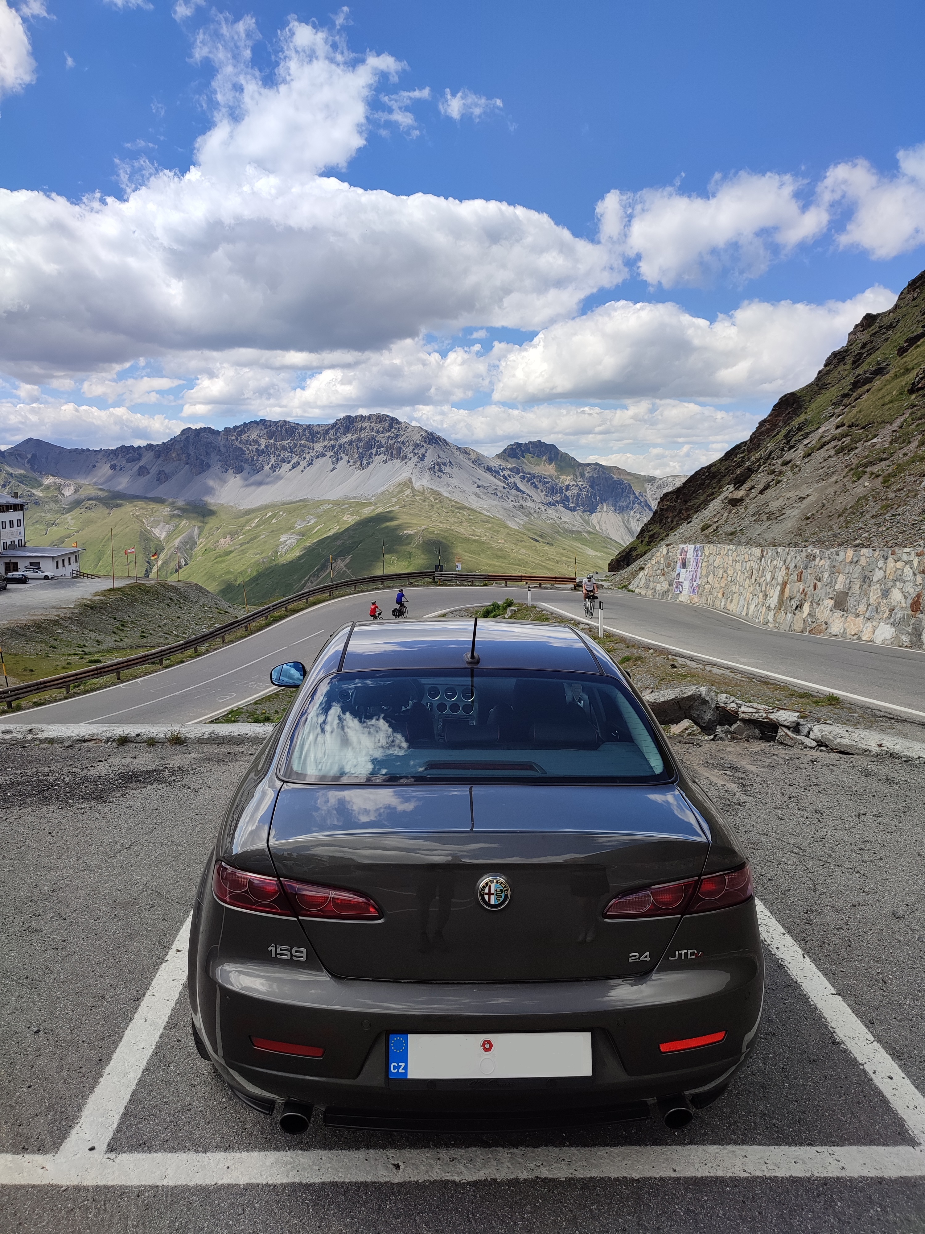 Před dovolenou jsem měl pak ještě možnost se svézt ve Stelviu 2.0T (taky ještě jednou díky Tazdevilovi). Na dovolenou jsme vyrazili s přítelkyní nejprve jižně od Mnichova pod Alpy, kromě jiného jsme v Mnichově navštívili BMW muzeum, půjčili si na odpoledne novou trojku G20 – velice příjemné auto mimochodem i se čtyřválcovou naftou a mildhybridem, pochodili něco po Alpách a pak se přes Rakousko a částečně i Švýcarsko přesunuli do severní Itálie. Cestu jsem zvolil přes průsmyk Stelvio, jeli jsme v týdnu, takže tam byl rozumný provoz a počasí nám také vyšlo krásné, když na vrcholu stoupání bylo sluníčko a 18 stupňů. Od Stelvia jsem neměl velká očekávání po stránce motoristické, věděl jsem předem, že silnice je uzoučká, nepřehledná a serpentýny zavřené, že rejd u 159 bude sotva stačit a ještě nacpaná cyklisty, motorkáři, občas autobusem a dalšími účastníky. Spíš mi šlo o projetí legendárního passa, na kterém jsem ještě nebyl. Jinak byla v Alpách a Dolomitech hromada silnic, kde jsem se projel líp. Když jsme byli v severní Itálii, nesměla samozřejmě chybět návštěva Museo Storico Alfa Romeo v Arese a fotka Alfy před bránou. Celkem jsme najeli 3080 km, dost z nich v horách. 159 fungovala bez jediného zaváhání, cestou zpátky jsem jí párkrát maličko rozjel na Autobahnu, abych si ověřil, že se ještě všechny koně z JéTéDéeMka nepoztrácely. Asi jich tam ještě pár zbývá, 230 po rovině pořád dá