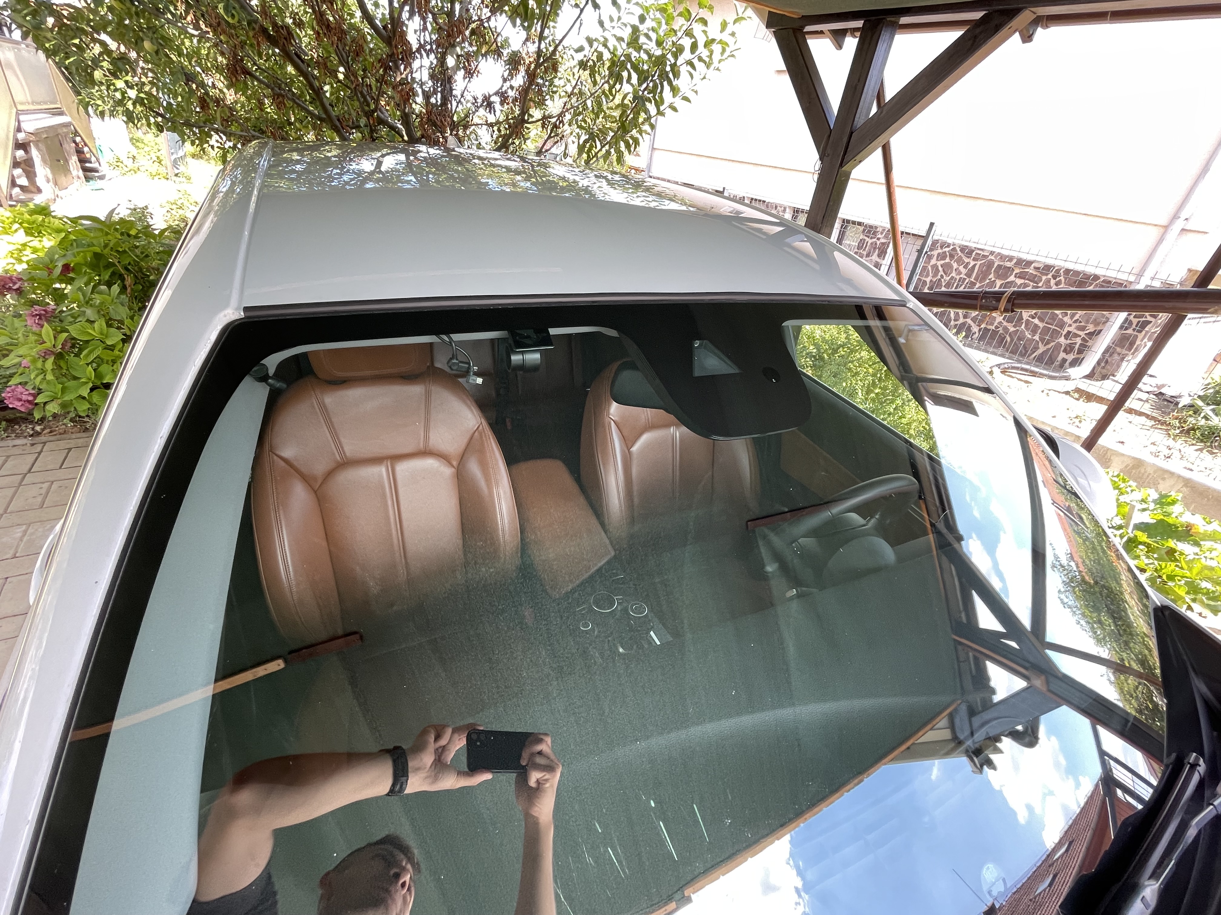 Tak som si napokon nalepil gumovú lištu na hranu strechy, bez toho, aby som niečo ošetroval, t.j. nalepil som to aj na tie drobné pluskance. Keď som auto riadne umyl, nebola hrdza veľmi viditeľná, skôr len náznaky tam, kde odbilo farbu. Snažil som sa tú lištu dostať pod gumu čelného skla, v strede to až tak dobre nevyšlo, snáď nebude robiť problém voda a bude to tadiaľ dobre odtekať.