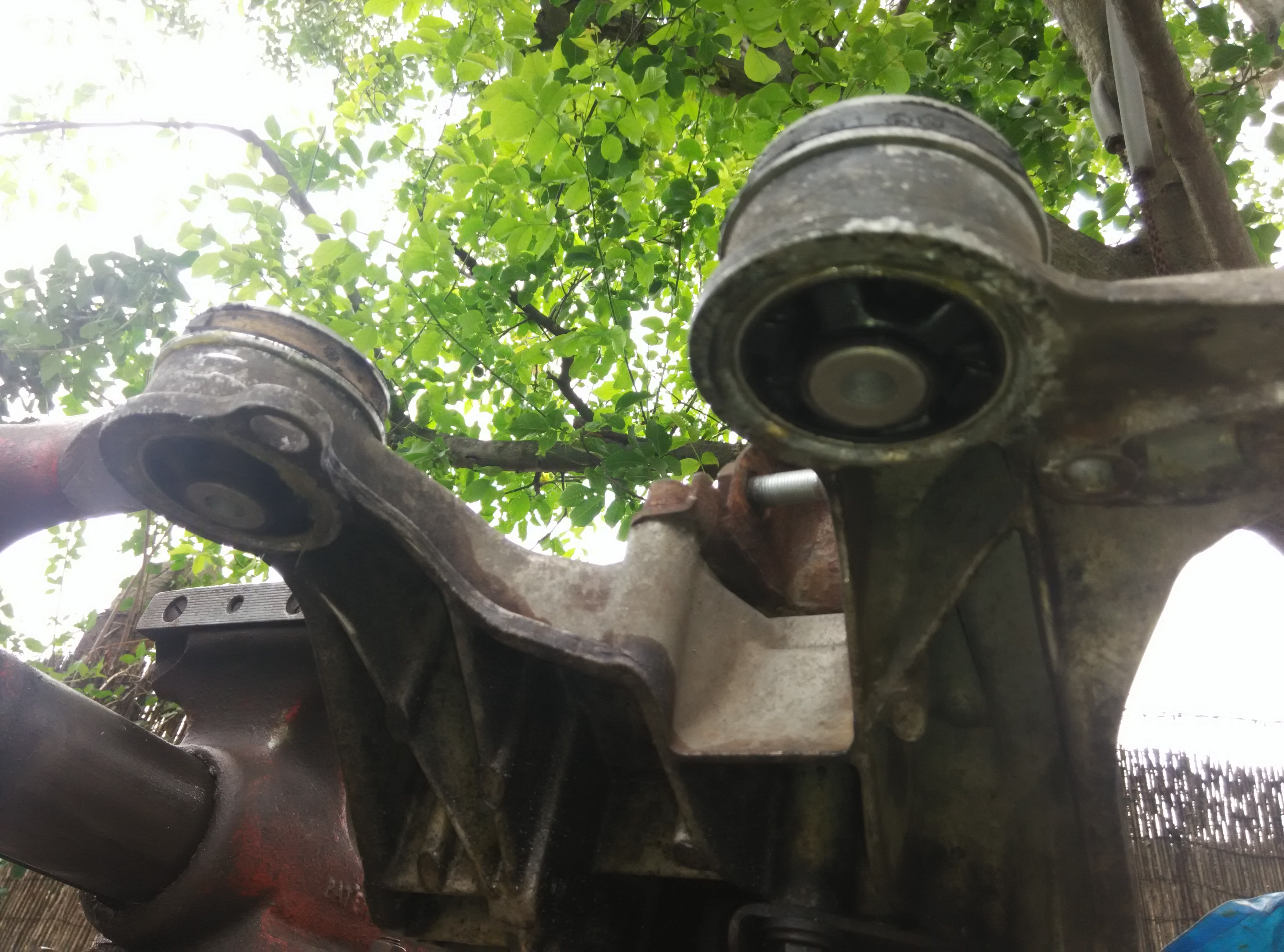 Dělal jsem zadní nápravu na 166 2,5V6. Sjížděly se mi vnitřky pneu, nic nemlátilo, ale v kolejích to plavalo, do A ten zadek byl. Sundal jsem nápravici, po 20 ti letech nešlo nic povolit, ale nahřátí pomohlo. Silent na rameni zteřelý, unibal v těhlici KO a unibal rameno - nápravnice vypadal bez vůle, ale šel podezřele lehce. Do ramene jsem koupil unibal 00026622 a silent 00027989 od TEDGUMU. Do těhlice unibal MEYLE 016 010 6313 vnitřní průměr 14 mm. Do nápravnice jsem dal silentbloky FEBI BILSTEIN 21332 4x. Bumerangy jsem nemělnil čep byl OK, promazal jsem je vazelinou A00 a přelisoval silentbloky SIDEM 835620. Nové uložení stabilizátoru a "kosti" MEYLE HD. Na tyč zavěšení kol jsem použil silentbloky MEYLE 16-14 610 0009 (zkráceny a vyvrtána vnitřní díra 14 mm). Do rozpěry na regulaci zbíhavosti jsem použil silent MEYLE 16-14 610 0009 (vnitřní průměr 12, vložil jsem do něj trubičku 12mm se stěnou 1mm, aby byl bez vůle. Vše šlo po očištění od rzi bez potíží nalisovat a na zbíhavosti vše OK. Kola jsou krásně rovně, žádná áčko, auto je klidné v kolejích, výměna stála za to. Ještě jsem řešil horní uložení tlumičů, které jsem nemohl za rozumný peníz sehnat, tak jsem si je vyrobil z předního uložení na Cromu TOPRAN 207 171. Je to na fotkách vidět.