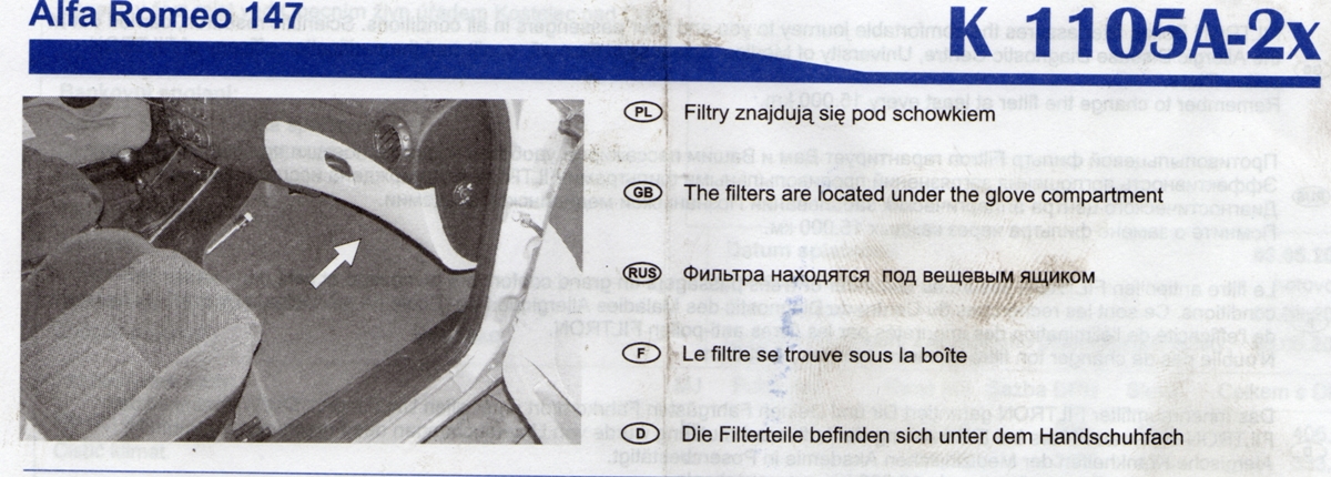 PO face interiéru není pod kaslíkem spolujezdce, ale je na středovém tunelu. Sundáš plast středového tunelu u nohou spolujezdce a jsi u filtru. Povolíš, vysuneš, vyměníš zadekluješ...