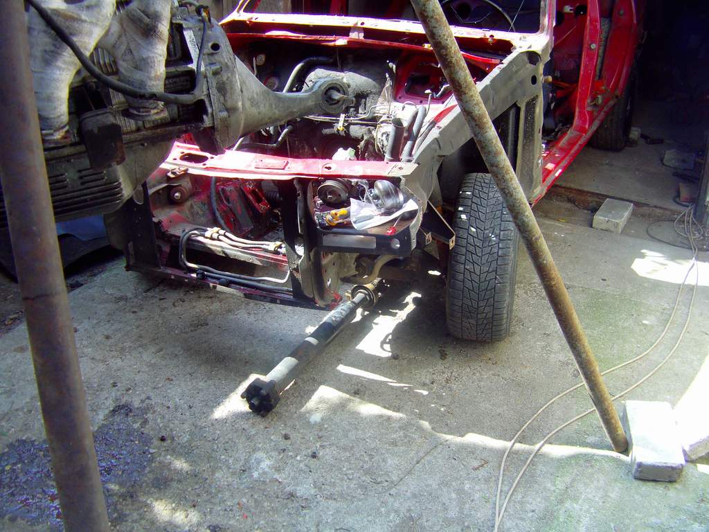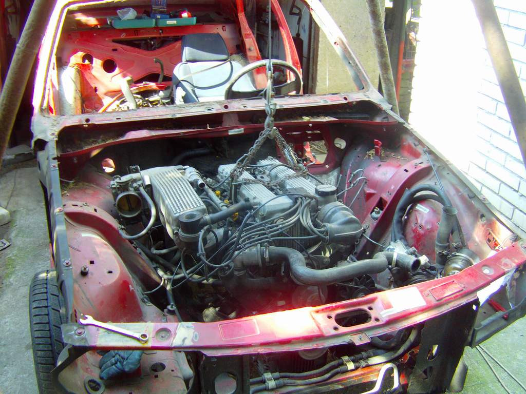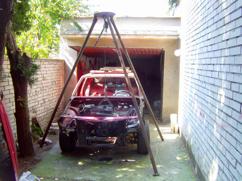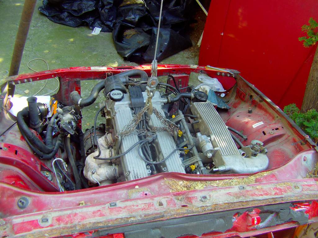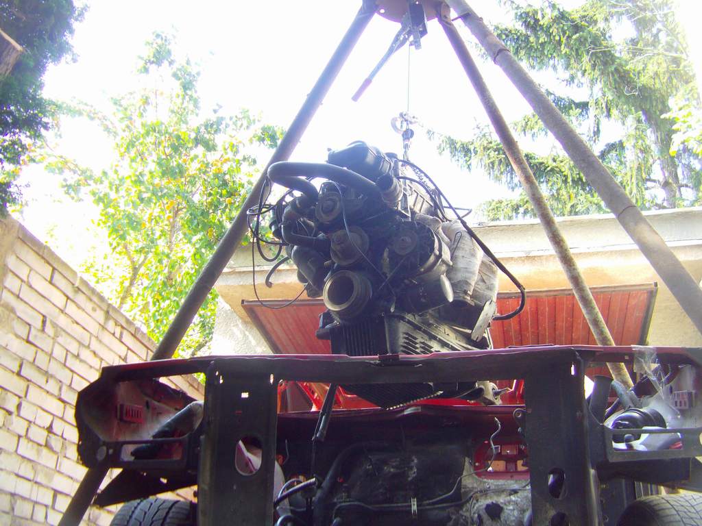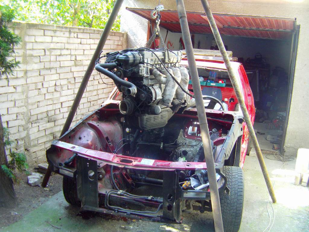 Takze dnes KONECNE bolo pacientovi odobrate jeho cuore sportivo, a to bol zaroven jej posledny organ na odobratie. Pacient je mmt drzany v umelej kome, z ktorej ked sa preberie tak dufam ze bude majitelovi, alias mne :D dobre sluzit. Motor sa nakoniec tahal aj s kardanom, ale po miernom podvihnutu agregatu sa podarilo tu "kralovsku hriadel" odpojit od zotrvaku a motor uz siel vonka jedna radost. Na aute ostava uz len zadne sklo, a ked sa aj to vyberie, tak mam ciste zelezo. Musim si rozmysliet resp. musia ludia co tomu rozumeju doporucit ci pieskovat a ked ano, tak si musim zistit ci peiskovat s napravamy atd atd...