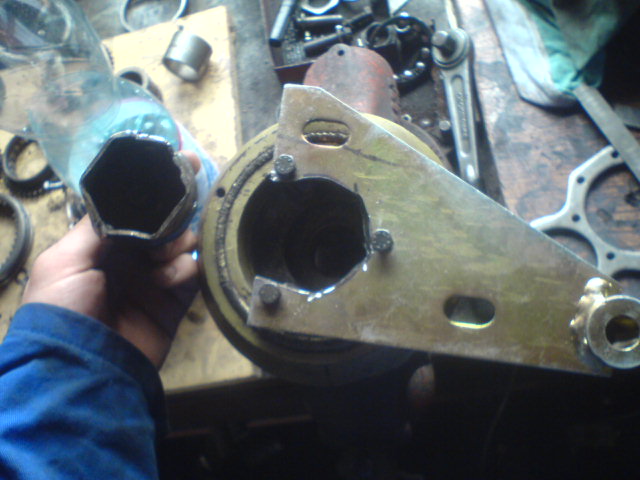 samotníé kolo používám stahovák k tomu určený a vypadá jako stahovák u jízdního kola na kliku.POZN:navíc díky tomu stahováku nemusíte sundavat prsa a rozhazovat rozvody, při výměně vstřikovacího čerpadla, protože u alfy 75 je v krytu díra hned naproti matce čerpadlového kola