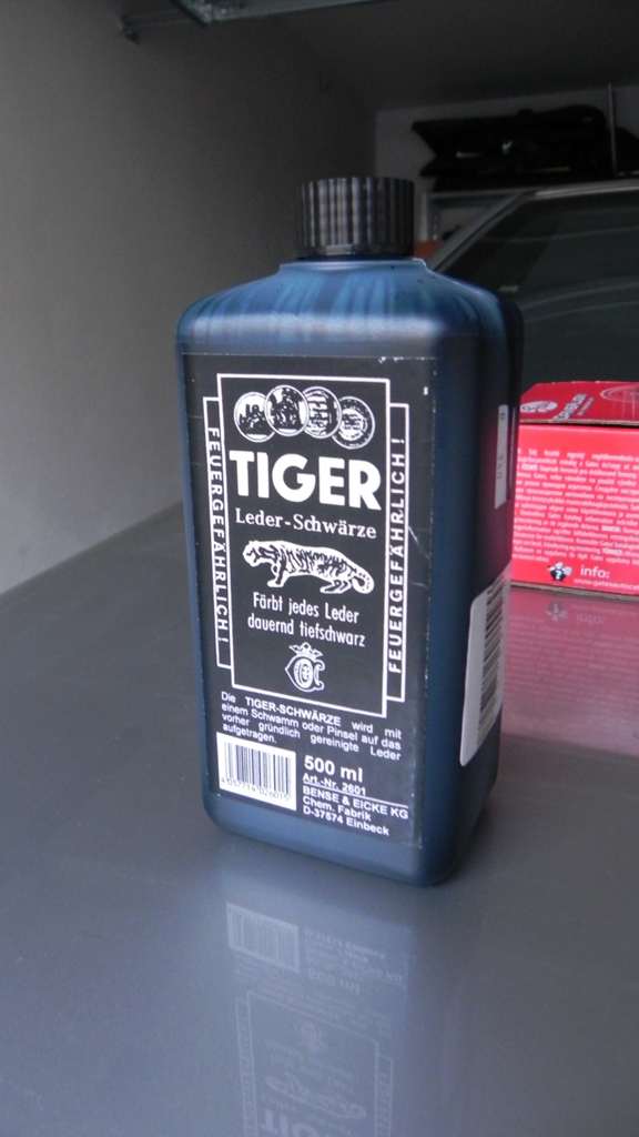 V pátek mi přišla barva na kůži. Teď jsem to lehce vyzkoušel a vypadá to, že to bude taky docela kvalitka. Je to určený na jezdecký sedla (Hanička to našla na http://www.bukefalos.cz). Po natření je to úplně vysušený a matný, takže to pak bude chtít pořádně nakonzervovat. Ale kryje to krásně.