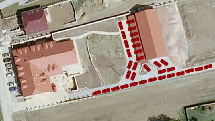 Všechna auta sklepníků v obou objektech zůstanou v "areálu" Usedlosti pod vinohrady. A protože je to mírně ve svahu bude toho regulovčíka skutečně potřeba. Žádné stání na trávě, všude je zánovní zámková dlažba (fotka je google earth - není moc aktuální), tak prosím majitele netěsných olejových van, aby si vzali protvany. A komu nebrzdí ručka, cihlu do kufru.