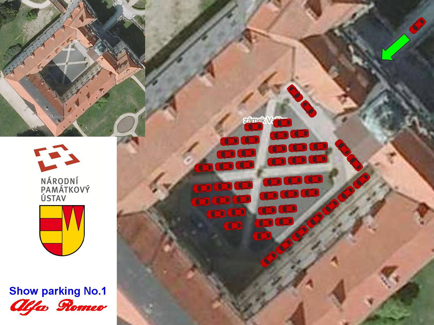 Pro ostatní přikládám schéma tetrisu. Vzhledem k souběžně pořádaným akcím na zámku bylo nutné parkování poupravit. Ale díky panu kastelánovi i za toto!