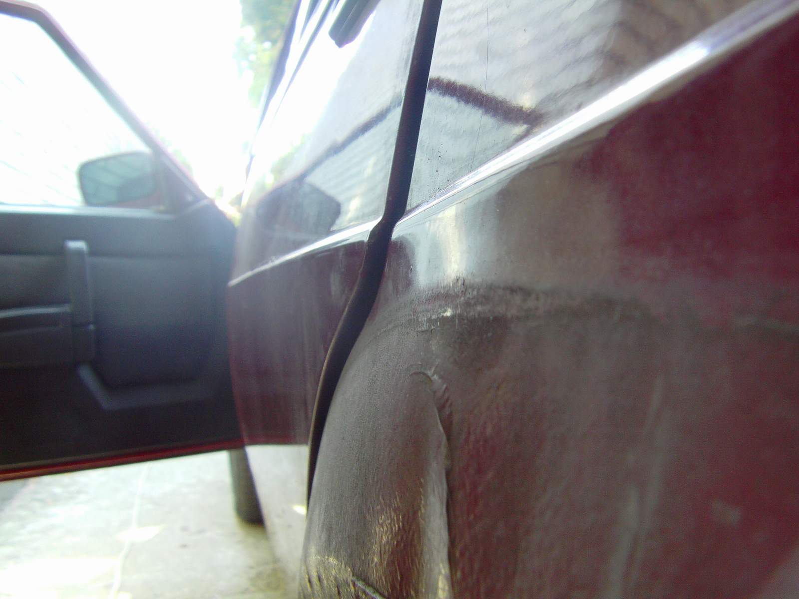 Tu su uz nake fotky, tie prve hned su tie zadne dvere, ako som spominal, na fotke su dere zavrete, ale ten blatnik je od narazu tak stiahnuty ze to nedosada, tam pomoze asi len vymena celeho boku :-k Kurna a zabudol som nafotit ten kufor, ako sa tam rozpadli tie tovarenske zvary, takze nabuduce.
