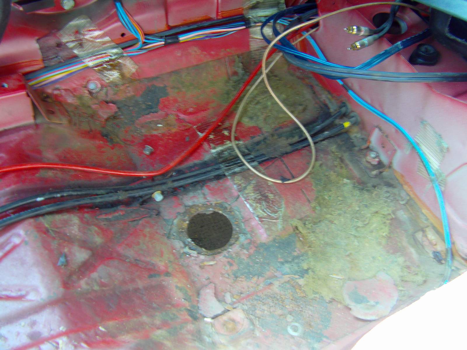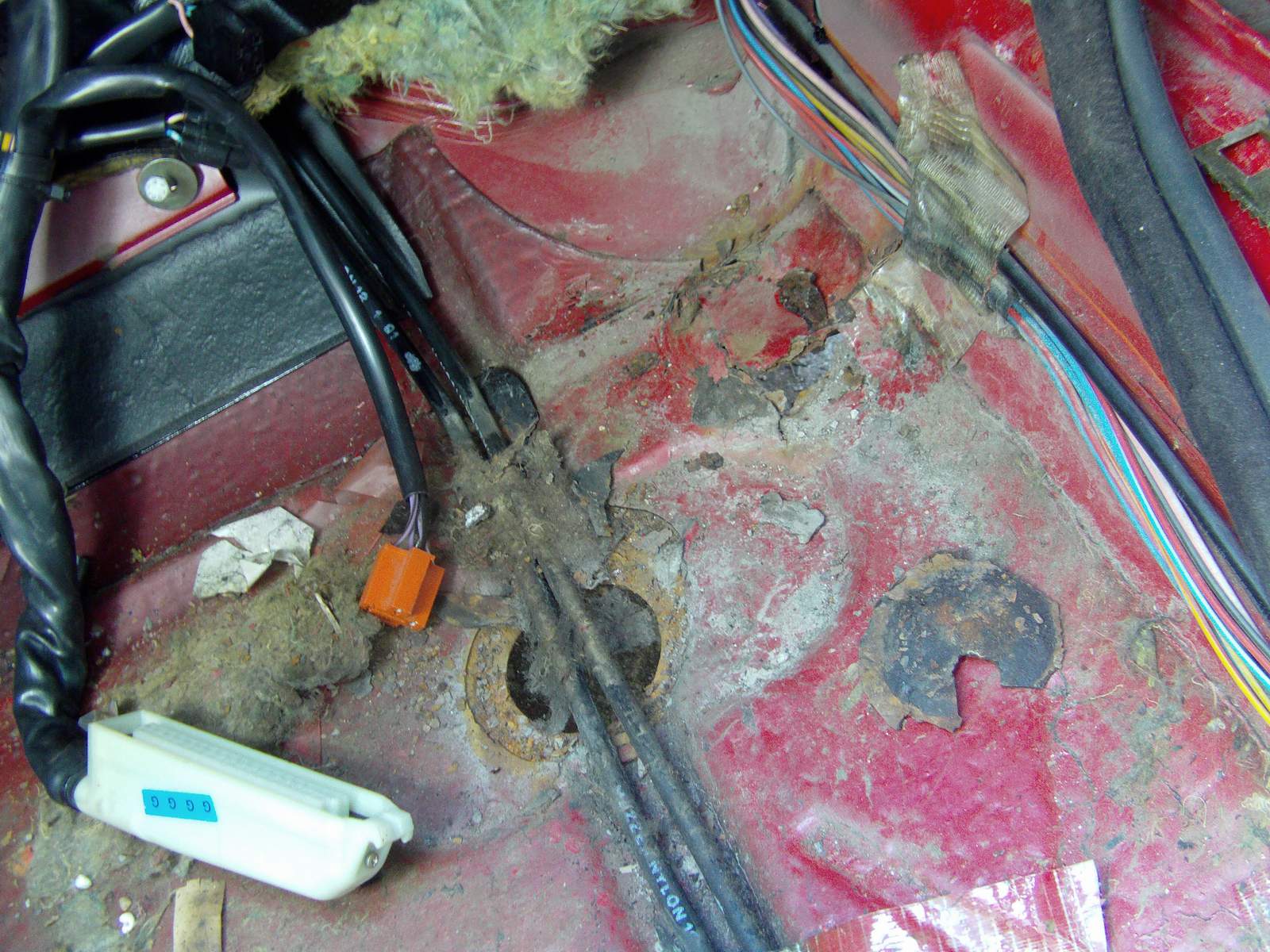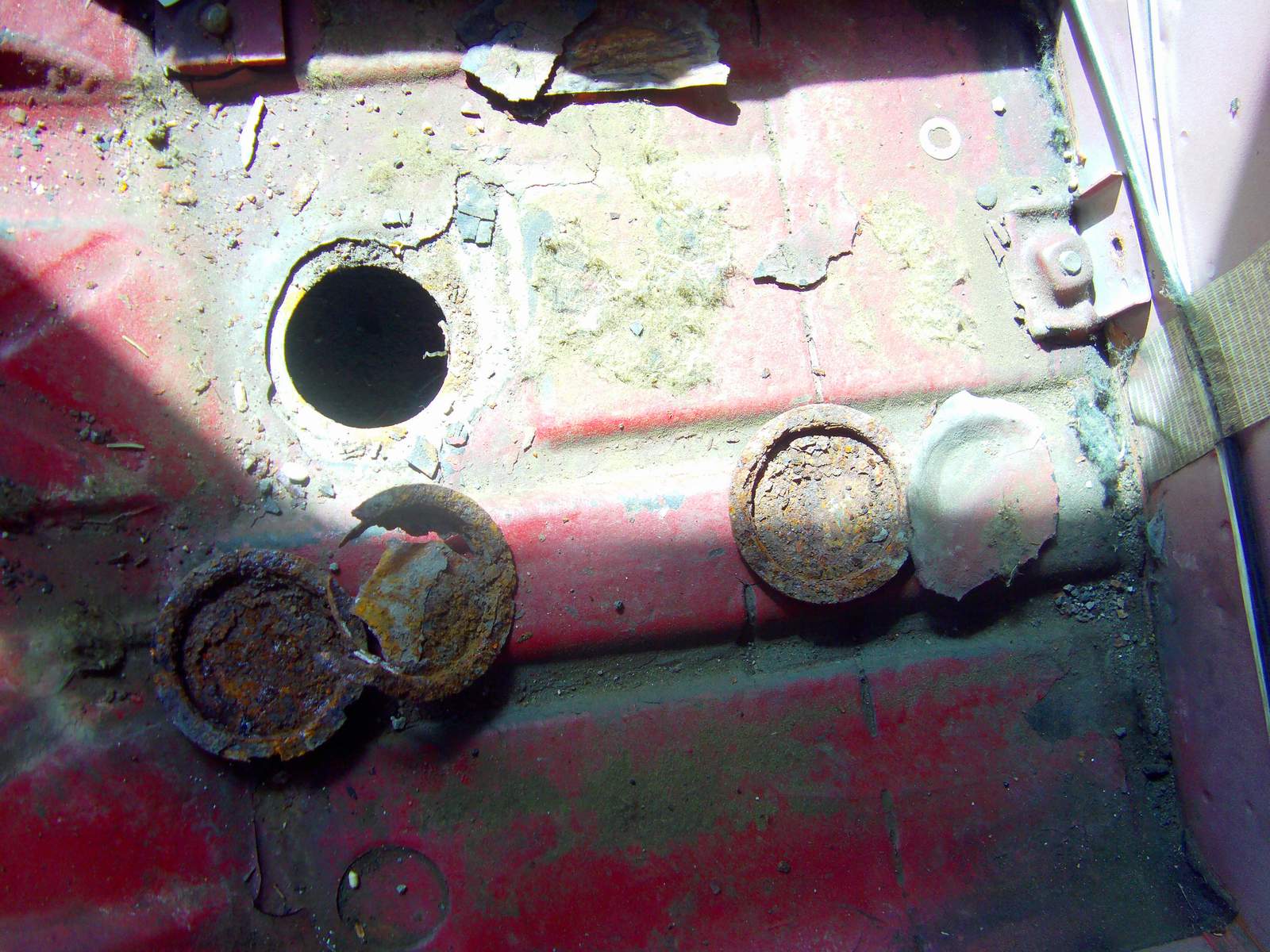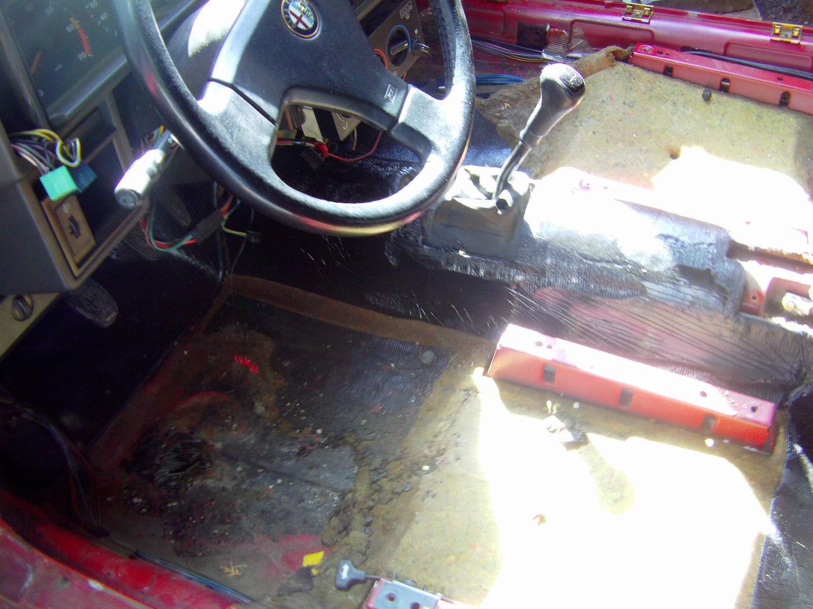 Podlaha na prvy pohlad nevyzera najhorsie, ale obavam sa ze ked sa este zoskrabe ten origo gumoasflat alebo co to je, tak sa uzke v plnej krase. Co su tie styry diery zakrytkovane na vyzametanie bordelu, tak kazda jedna mala ten stupel zhnity a okolo kazdej diery prehnite, najhorise to je u vodica, tam je ta diera oproti originalu aj zvacsena :???: a potom este nejake diery su, tiez vpredu.