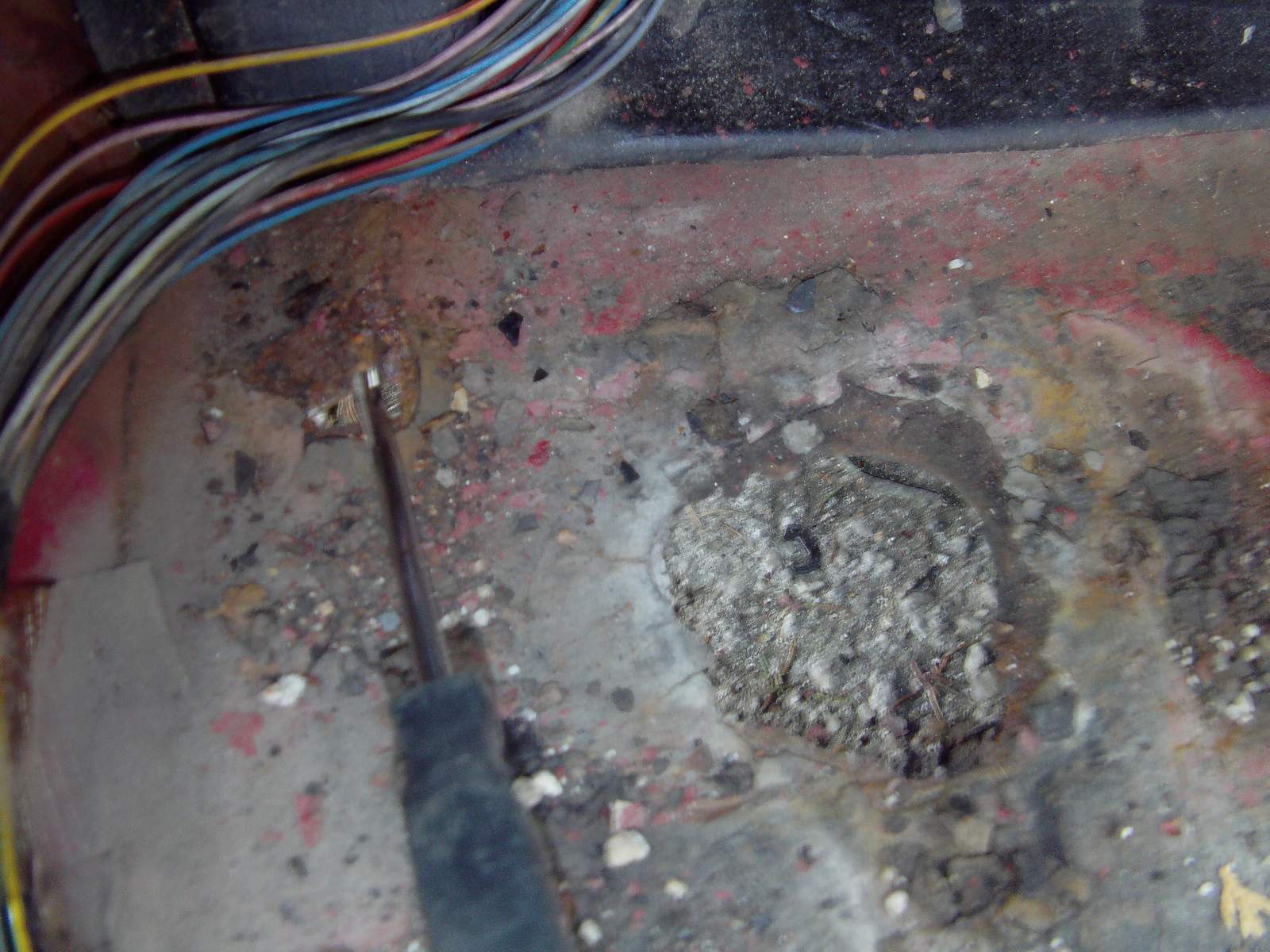 Prave som pozeral, podlaha natom bude o dost horsie, namatkovo som srobovakom skusal zoskrabavat tu vrstvu "asfaltu" abo co to je, a zrazu len hups, a bol som skrz podlahu. Evidentne je to dobre len nato aby to tam drzalo vlhkost. Taktiez premyslam ze tie otvory na vyberanie bordelu v podlahe dam zavarit, zrejme aj tam sa pri tych stuploch drzala voda a preto to aj odtial zacalo cele hnit, a tie diery mi pridu aj tak zbytocne.
