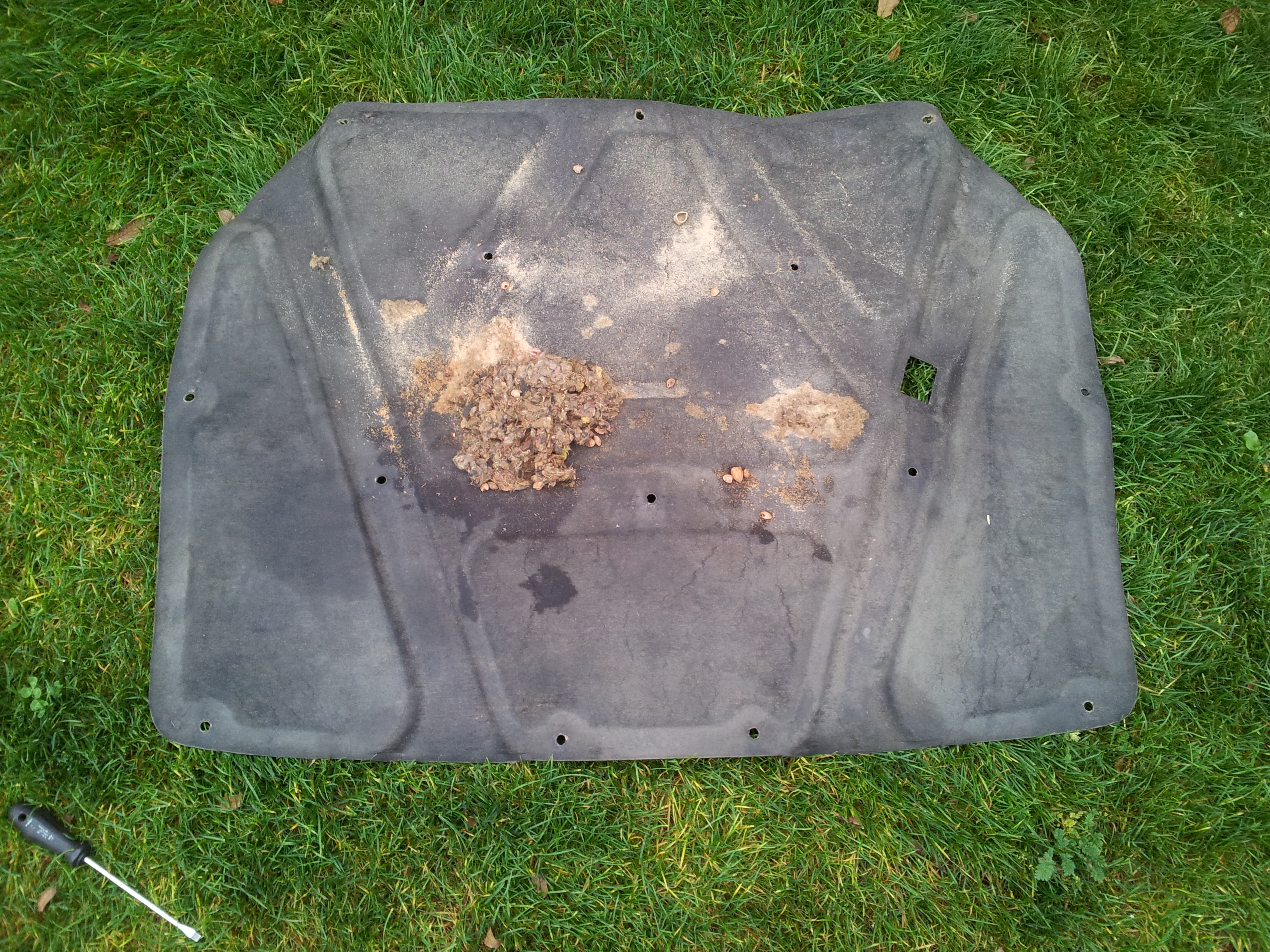Letošní odstávka očividně vyhovovala nějakému hlodavci, který se zabydlel mezi haubnou a tapecem, z tapecu si nadlabal hnízdo a nanosil si dovnitř hromadu ořechů. Takže kdyby se někomu doma válel přebytečný hezký tapec, hlásím se. Můj byl jak nový, fakt škoda