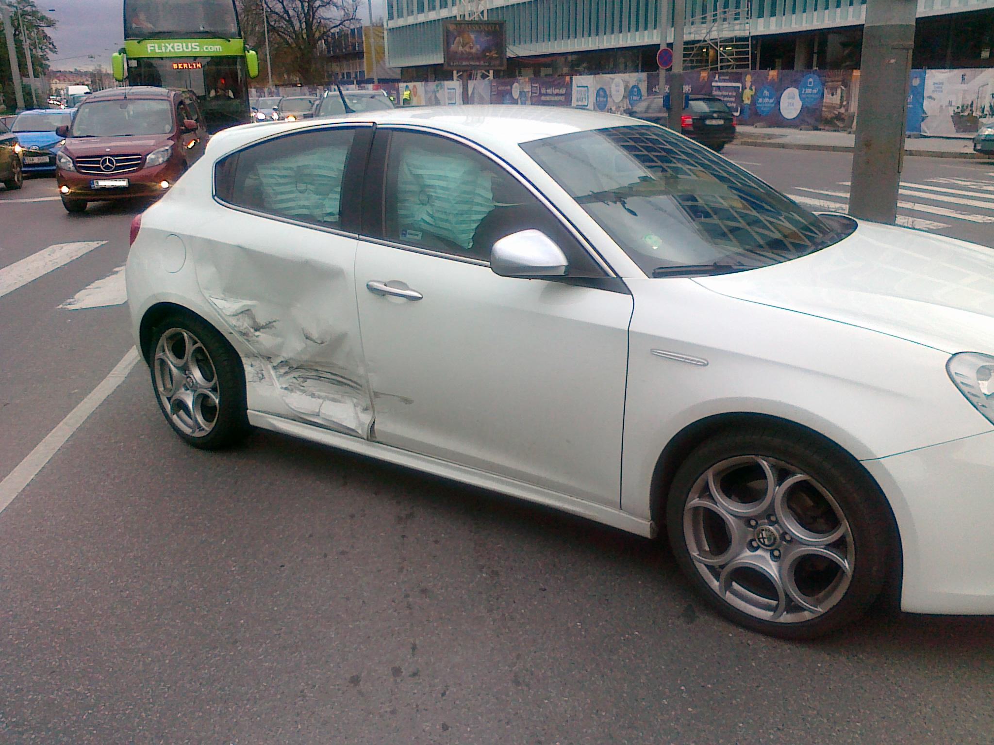 S hlubokým zármutkem oznamuji alfistům,že mě dnes navždy opustila má bíla Giulietta.Prožili jsme spolu krásné dva roky,ale bohužel nám nebylo dopřáno více,neboť tvrdý náraz do pravé zadní části poslal rozhodnutím pojištovny do "totálkova".Bránila mě srdnatě - všechny bagy na pravé straně vystřelila i kolo si málem nechala urazit - ale za to zaplatila škodou vysokou. Čest její památce.