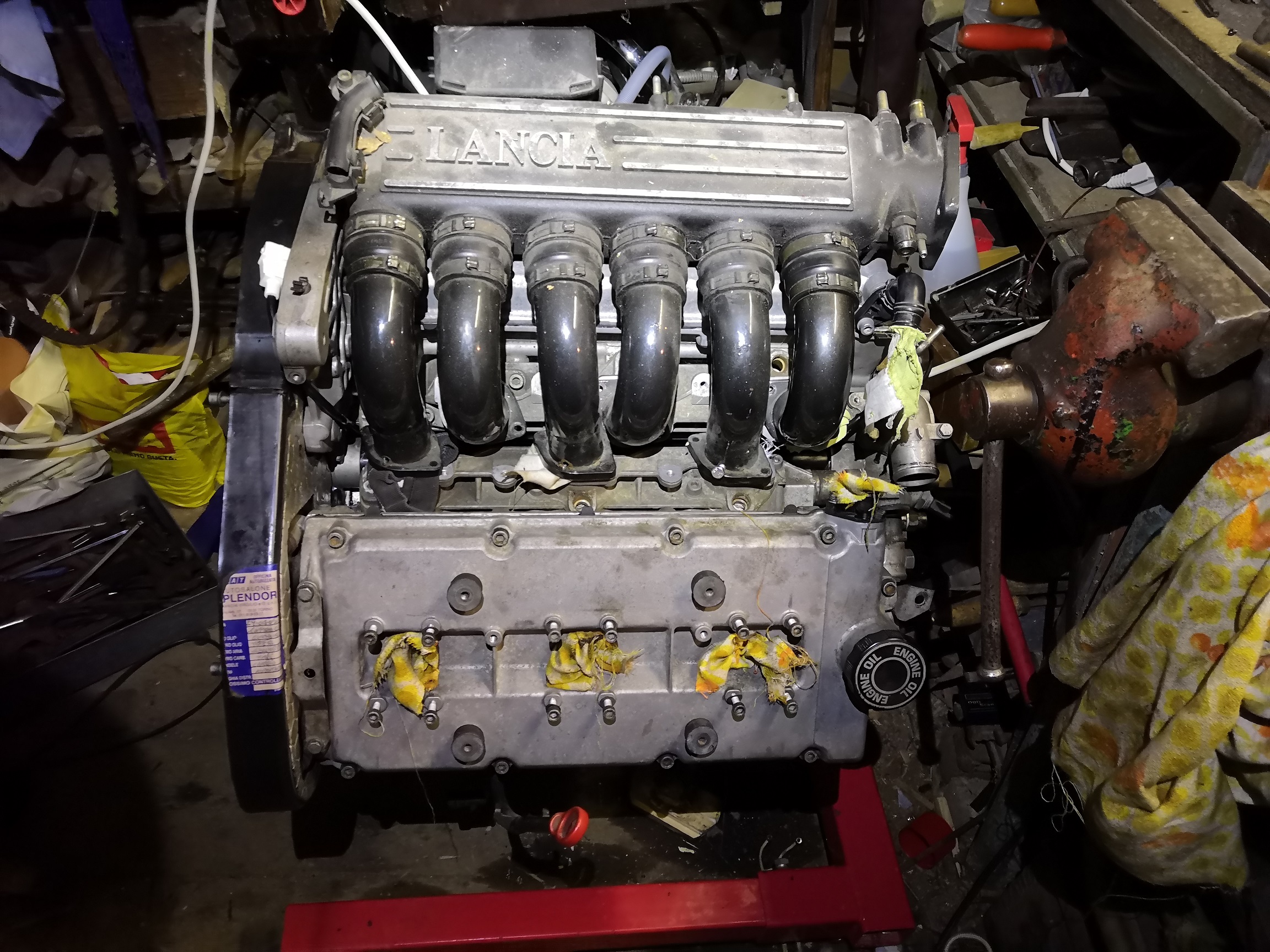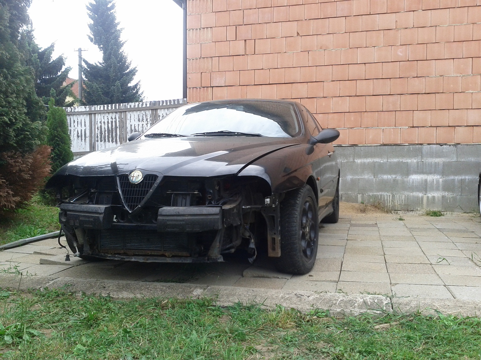 Vítejte, před několika rokama jsem se nějak zprčil a našel si jednu 156 s 2,5 kou. Když jsem ji uviděl na bazošu, jel jsem na ni mrknout 150 km... Byla to... chudinka a já neměl to srdce ji nevzít. Musel jsem ji zachránit. Auto několik let spíš stálo než jelo a jsem pátý majitel a už to o něčem svědčí. Svézt se a zahodit - to je oč tu běží. Každý plastový díl v motoru je nastříkaný na červeno, kolena orezlý, vstřiky přicpaný, hadice rozdrbaný, uřízlý výfukový tlumič, chčijící vodní chladič, uřízlý trubky od klimy a chybějící kondenzátor, rozflákaný přední mlhovky, nefunkční ventilátory na chladiči, co z exterieru jde, tak hnusně nastříkané na černo a zčásti oloupané, levý přední blatník nasazený tak, že se při otvírání kapoty celý odklápěl, přední nárazník jakýsi hnusně lakovaný a podeformovaný s prosvítající červenou barvou, pneumatiky každá jiná a zimní, rozervaná manžeta na poloose, hučící ložisko v předním kole, polorozpadlá přední světla (polykarbonát na jednom světle už drží pouze silou vůle), plesnivé sedačky, zadní sedačka roztrhnutá, nefunkční abs, atd. Nakonec jsem to po pár peripetiích dovezl na podvalu domů a nastalo prvni překvápko. To, že motor běžel tak na 4-5 válců, to mi celkem nevadilo, to jsou drobnosti, ale po asi minutovém chodu (sundávání z podvalu, atd.) přestal fungovat posilovač řízení. Stačilo se mrknout pod kapotu - byla naopak nasazená řemenice na vodní pumpě, tak se rozesračkoval řemen. Nasadil jsem druhý, který jsem někde našel (starý z nissana), namontoval "normální" svíčky a nastartoval. Chod motoru pořád nic moc, ale už to jelo aspoň po šesti. Po lehkém vytočení se od rozvodu ozývalo jakési klepání. Šponovaci kladka rozvoďáku doslova plandala na jednom povoleným šroubu M8. Kupodivu to neskočilo... Po přišroubování i na další šroub už to bylo lepší.