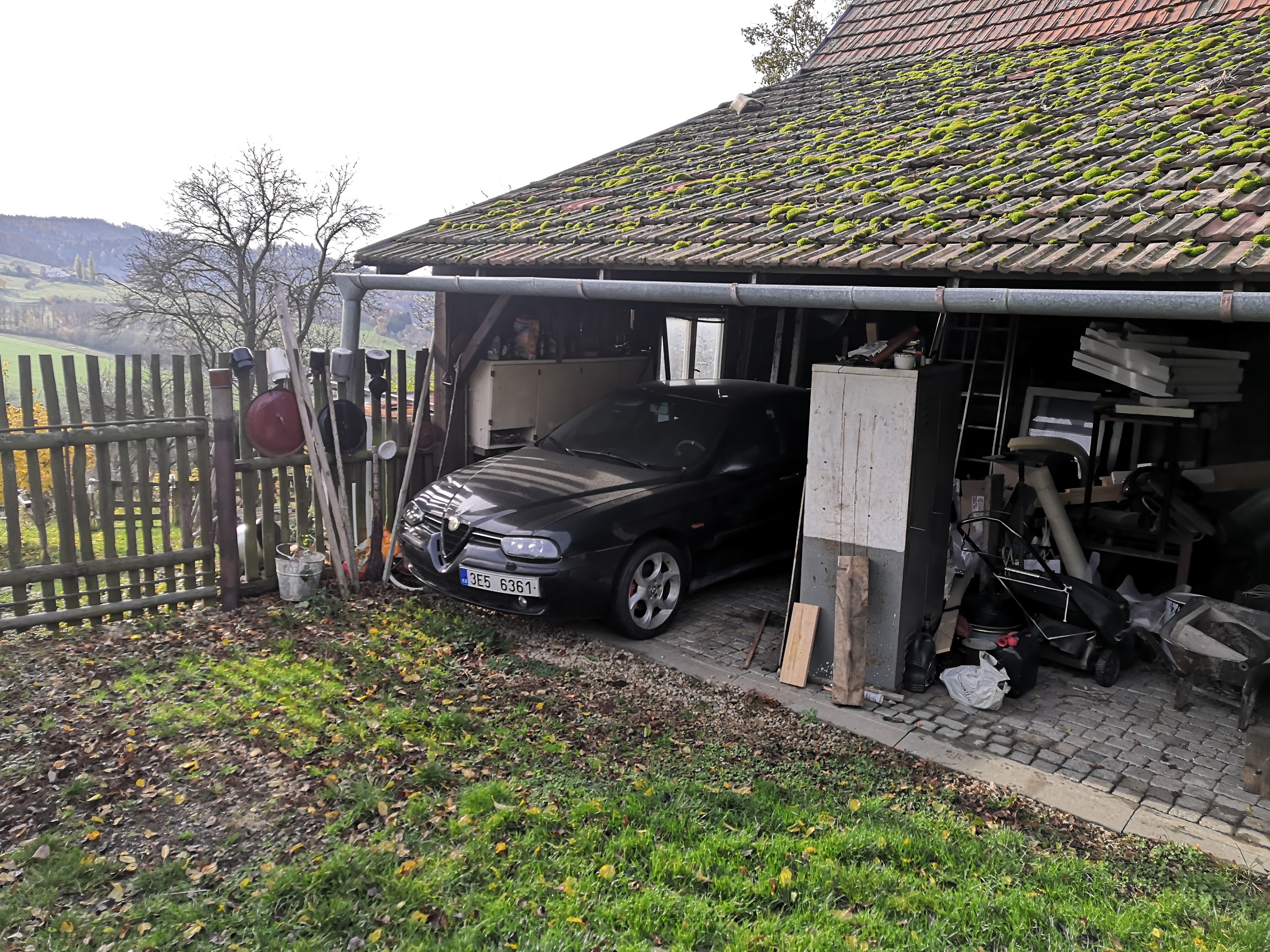 Každopádně nyní je zazimováno. Není to úplně dle mých představ, ale aspoň je to na suchým místě a většina auta je pod střechou... Sice obeskládaná bordelem, ale pod střechou. :-)