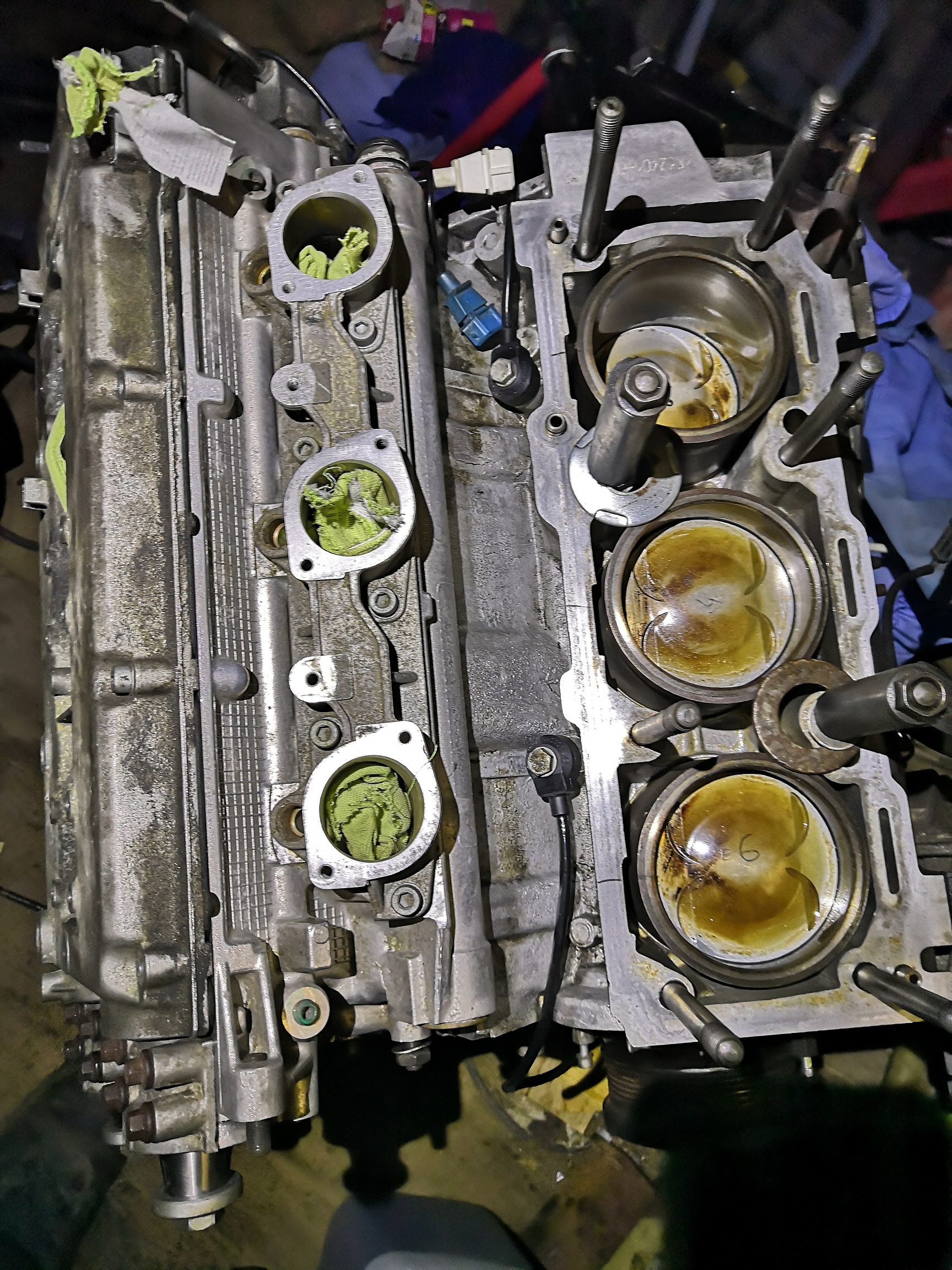 Motor stál 2500 Kč a původně byl plán to tam dát tak, jak jsem ho sehnal. Pak jen že mrknu na vačky, pak že teda jen sundám jednu hlavu, no a nakonec jsem klasicky tahal ven písty, vložky a všechno.