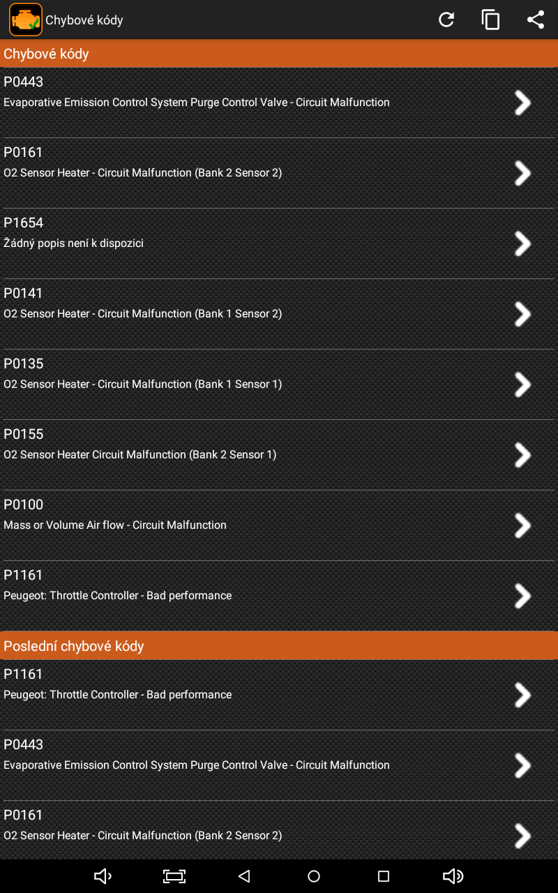 Chybové hlášky: P0443, P0161, P1654, P0141, P0135, P0155, P0100, P1161