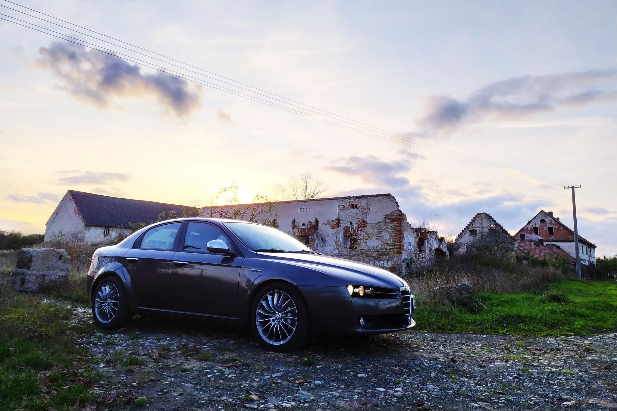 Nakonec se v prosinci mezi svátky konečně našel šedý sedan ze září 2008 ve výbavě Elegante, čerstvě dovezený ze severní Itálie po dvou majitelích (první měl auto zhruba půl roku, následně mu ho leasingovka zabavila a Alfu koupil druhý o pár let starší než já, který ji vlastnil skoro 9 let). Ceníková cena tou dobou v přepočtu 1 100 000 Kč. Motor jel krásně, převodovka řadila hladce, podvozek pevný a tichý, celkový stav velice zachovalý, kosmetika minimální, lakovaný byl částečně jen pravý zadní blatník, kilometry seděly, auto mělo veškerou požadovanou výbavu (xenony, černá kůže s nastavením sklonu sedáku, park. senzory vpředu i vzadu, navigace, dešť. senzor), obecně to vypadalo, že o auto bylo postaráno, a navíc na něm byly obuté nové nečínské zimní pneu + sada lehce jetých letních pneumatik Goodyear a nedávno dělané rozvody. Na výměnu byly komplet brzdy a termostat, což ale bylo zohledněno v ceně. Všechno vypadalo skoro až podezřele dobře, takže jsem si to ještě radši nechal přes víkend projít hlavou a po zralé úvaze pro Alfu s penězi v pondělí vyrazil. Už první tankování byl příjemný zážitek, kdy se dva kluci od čtyřkového Golfa spolu bavili a jeden říká: „Viděl jsi tu Alfu? Pěkná, co?“. A druhý na to: „To jo, ale taková stojí jiný prachy, kámo.“