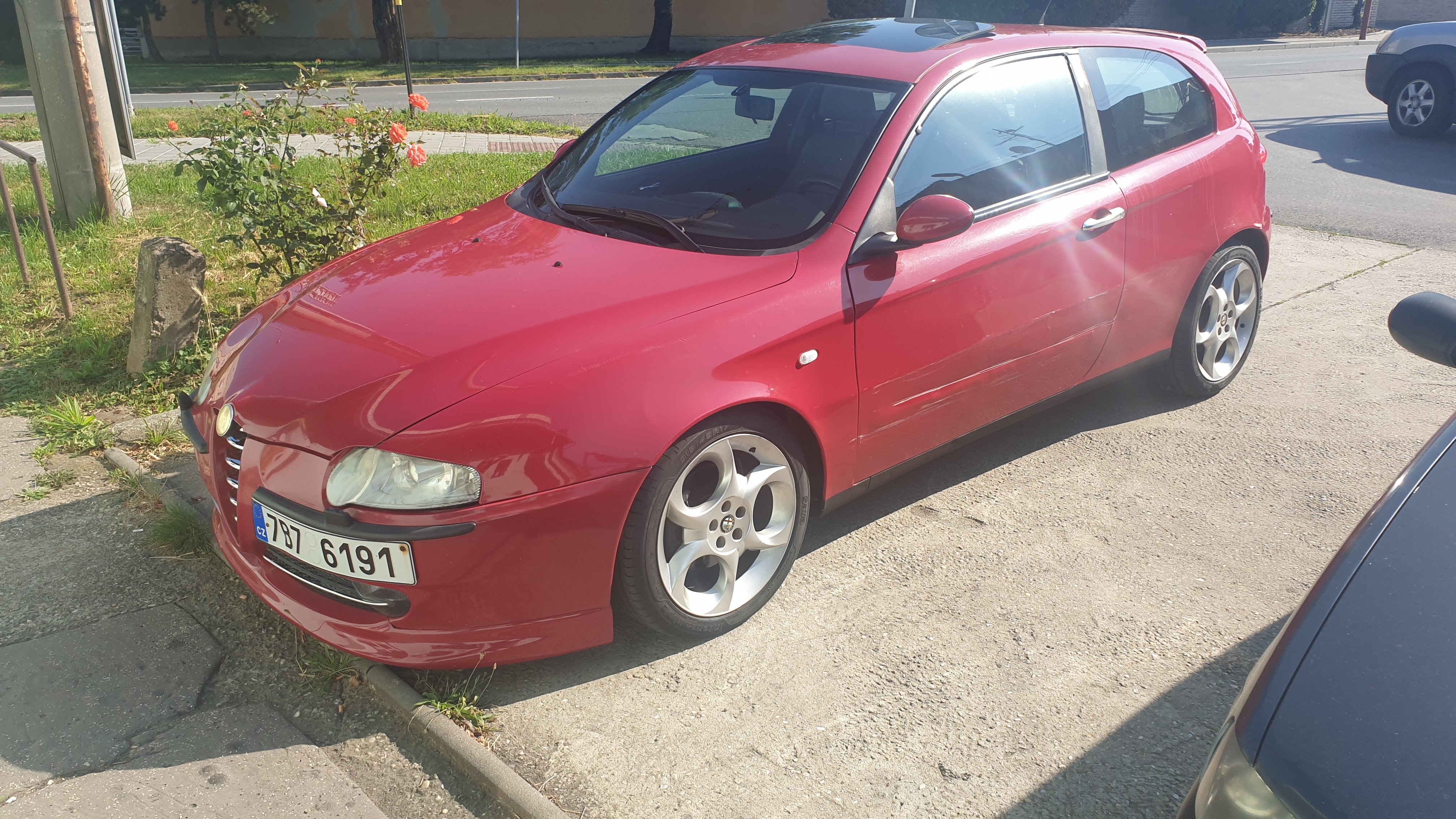 To je věc, která mě sere nejvíc. Červený lak je dávno v řiti. Je oloupaný a navíc je levá strana odřená. Přední blatníky jsou špatně spasované a chtěli by vyměnit. Lamitánový přední a zadní nárazník je zbytečná těžká blbost a neustále škrtají o zem. Chce to prostě celolak.