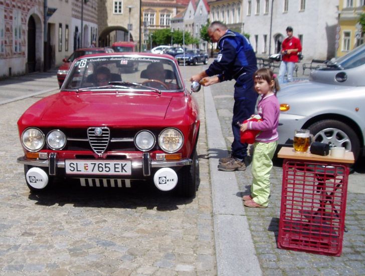 Mimochodem Kubasi, ty už bys mohl jet jako účastník, ne? :wink: (i když já možná taky, loni si alfu pár německých veteránistů zálibně prohlíželo. Ti s Ferrari, L Countach apod. bohužel ani moc ne :smt102
