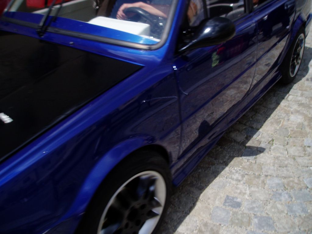 Tady je zatím neuvedená momentka jednoho útoku tuningáře na mojí osobu. Z ničeho nic se loni na tom srazu v té záplavě italských krasavic objevil tento unikátní "skvost" do naší sbírky "tuzíme co to dá" a já se jej pokusil NENÁPADNĚ vyfotit. Ale, asi zvyklý na "obdivné" pohledy mě bystře zmerčil a přestože viděl, že jsem chromej o berlích, podnikl na mně brutální útok svým škodofčím žihadlem.