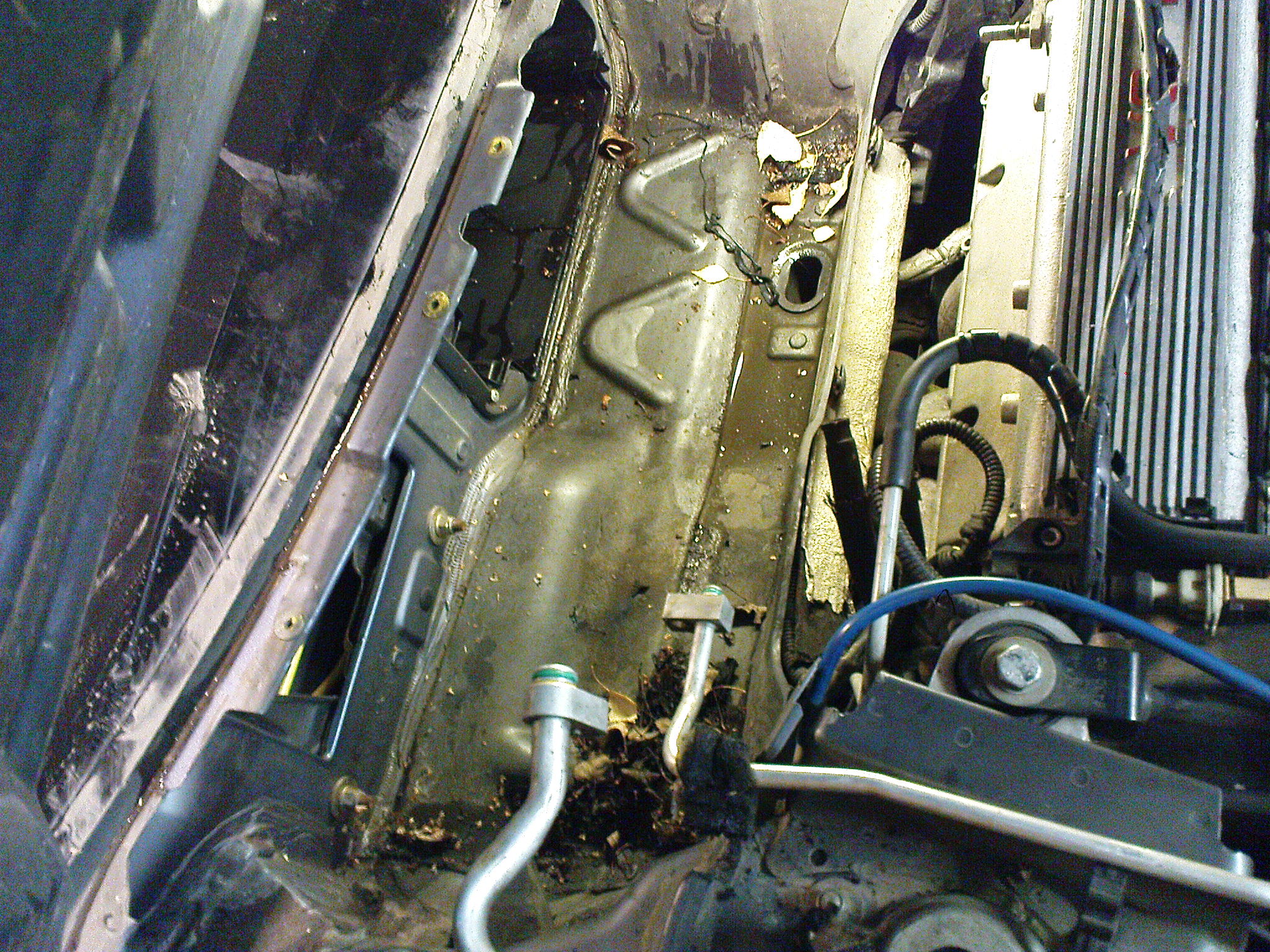 Protoče celé to tělěso radiátoru včetně toho prostoru pro něj je nakloněno směrem dolu jakoby pod ICS. No a voda co začne téct teče tím tubusem hezky až dolu k řadícví páce, kde jsou relé na centrál a blikače,,,,
