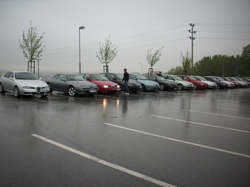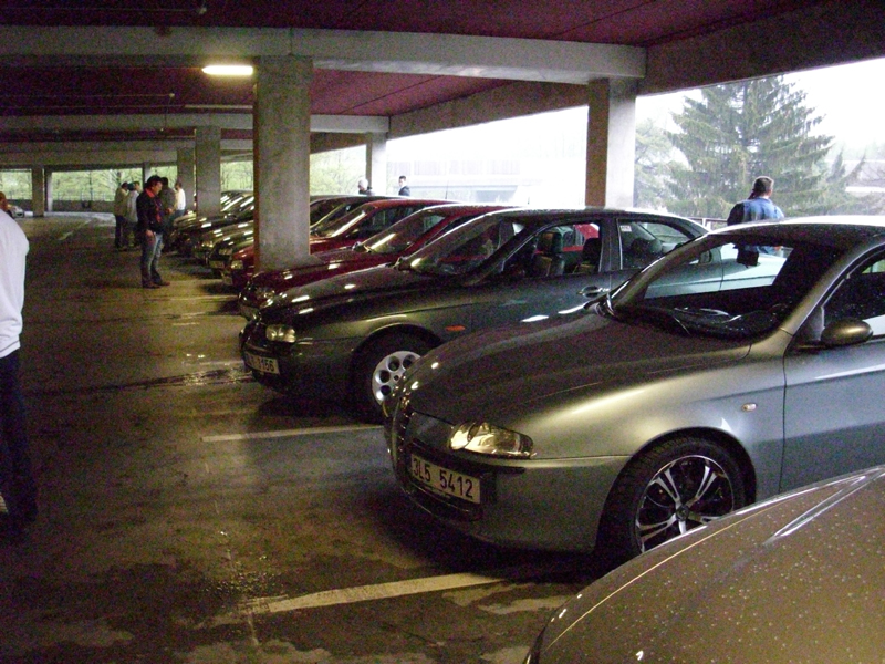 Dnes si dal dostaveníčko v patrových garážích obchodního domu Nisa (bývalá hypernova) liberecký klub alfistů. Účast byla opravdu hojná a myslím, že by se za ní nestyděl ani kdejaký víkendový sraz. Věřte nevěřte, ve všední podvečer se nás setkalo neuvěřitelných 23 vozů, což mě jako nováčka pěkně namlsalo. Bylo to pohodové setkání, kde se klábosilo o všem možném i nemožném. samozřejmě, jak už to tak bývá i nějaká ta černá kanka se objevila na tomto bezva srazu. Za prvé trochu nevyšlo počasí, což mělo za následek, že jsme se museli přesunout z horní otevřené části patrové garáže o patro níže, aby na nás nepršelo a my se tak dále mohli porozprávět o svých zážitcích a zkušenostech se svými špagetovými mazliky.