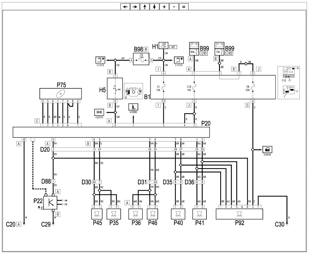Já to schéma mám. Konektor je plně obsazený. (25 pinů) 8 a 8 drátů pro repro, 4 pro woofer, 4 napájení a jeden je spínací signál pro zapnutí zesilovače. Na druhém konci toho hnědého konektoru by měl být reprák wooferu takže tam bude ještě potřeba udělat propoj do žlutého konektoru.
