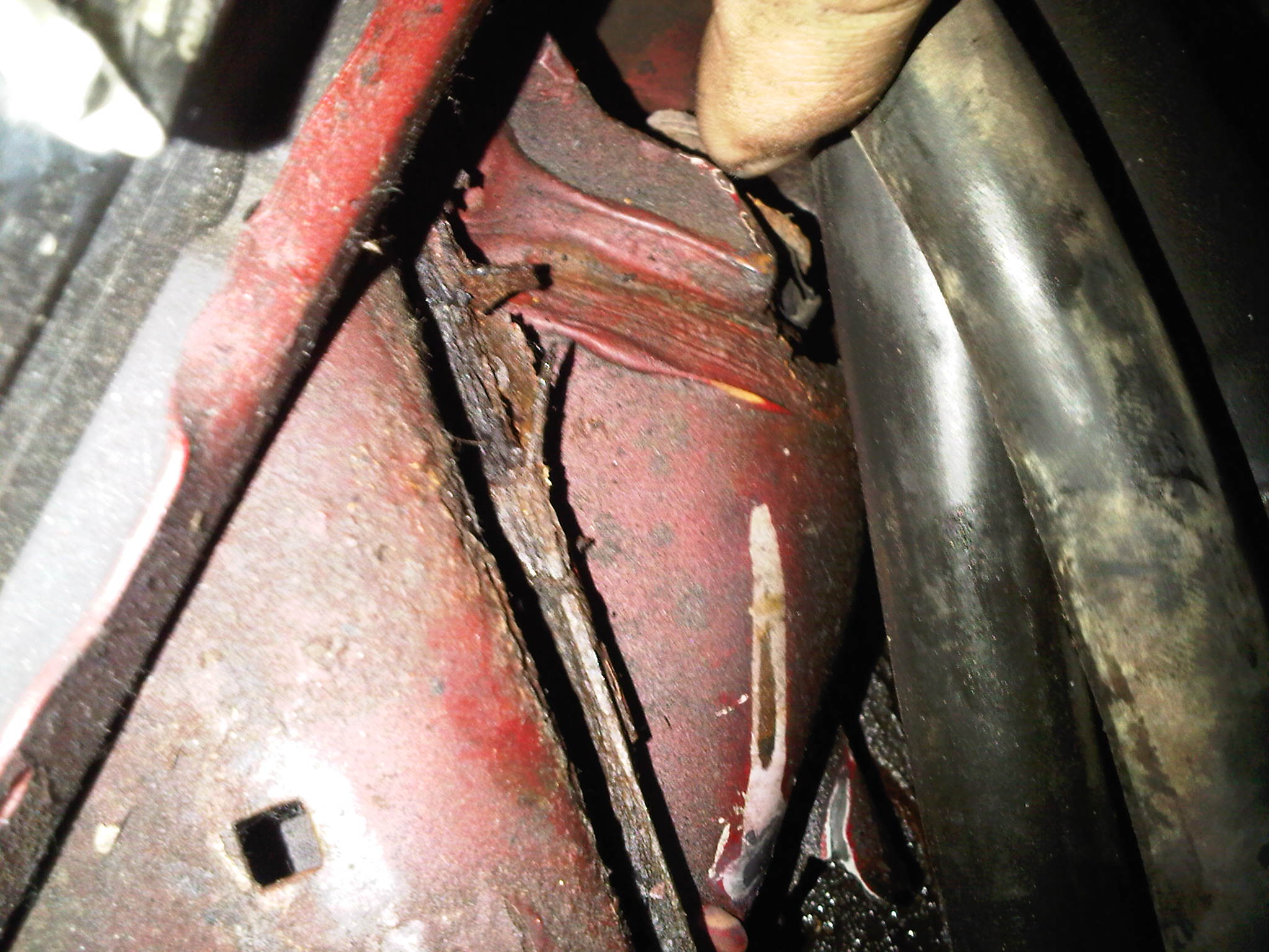 Nazdr stala sa mi taka vec utrhlo sa mi uchytenie ramena laveho predneho kolesa na blatniku okolo vymazu (vid. na foto), teras ked tocim kolesami tak sa to rameno aj s tym kuskom plechu hybe pri motore co mi nasledne ucvaklo hadicku posilnovaca riadenia (nastastie lebo nebit vitecenej kvapalini posilnovaca tak by som to any nezistil a este by ma niekde na dialnici predbehlo koleso