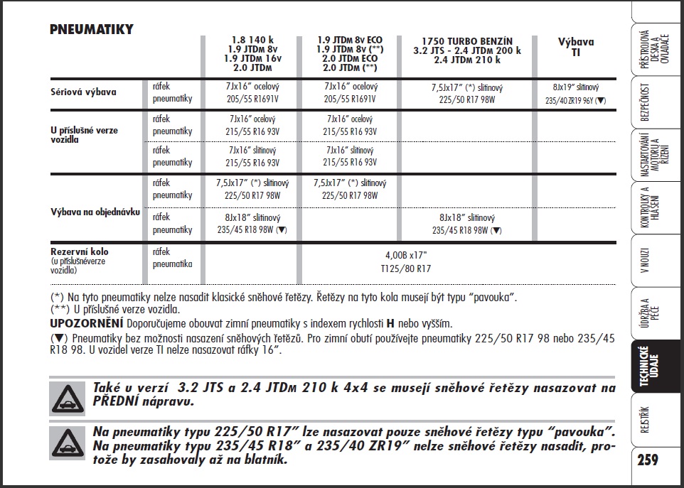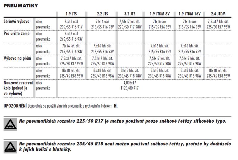 ja viem ze su odporucanie 215/55 ale na zimu chcem so najuzsie a ten rozmer 205 sa mi zda akuratHampice píše:Tak především bys na 1.9 JTDm 16V neměl vůbec dávat 205/55 ale 215/55 a váhový index 93!, rychlostní V. Na zimní doporučen rychlostní index H a nahuštění o 0,2 bar víc, než na letní. Pokud nemáš havarijní pojištění, tak na tom asi tak nezáleží, ale můj názor je, že výrobce asi ví, proč jaké gumy doporučuje.